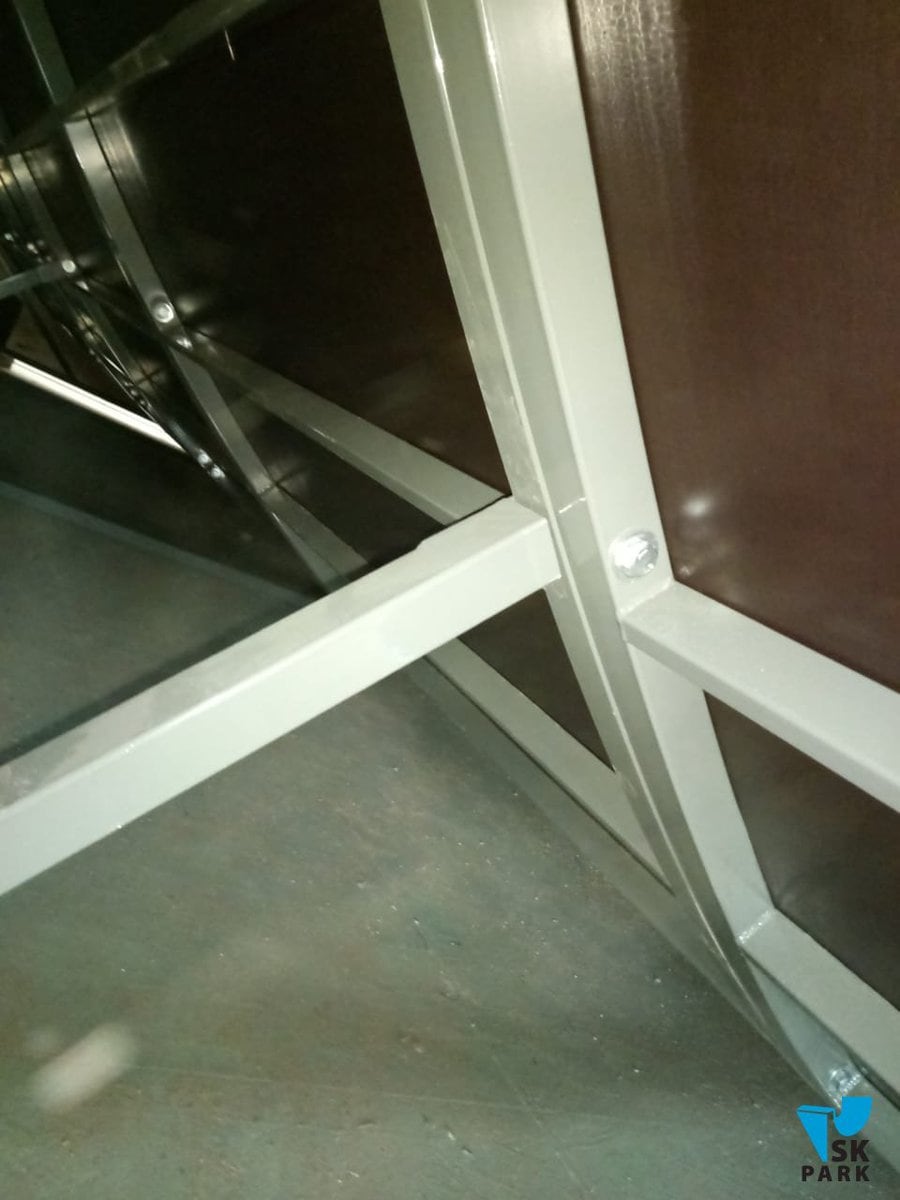 Все оборудование обшивается рабочей поверхностью(фанерой) на нашем собственном производстве, за исключением индивидуальных проектов, где обшивка рабочей поверхности предусмотрена по месту монтажа.