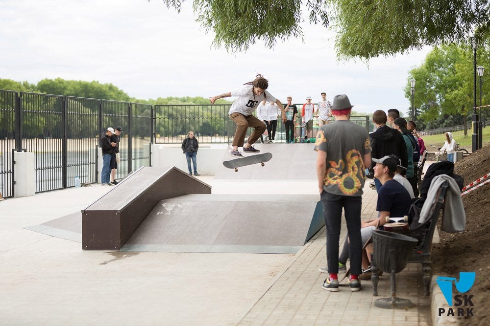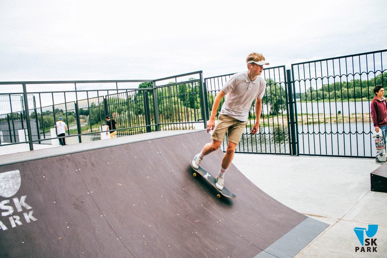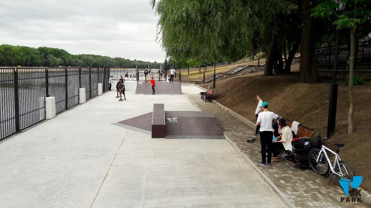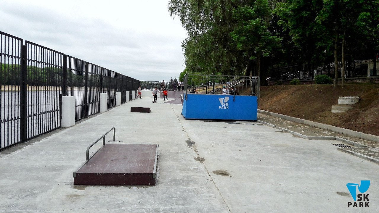 Скейт-парк состоит из: разгонных горок, фанбокса, скейтплазы и мэнуал пэда.
