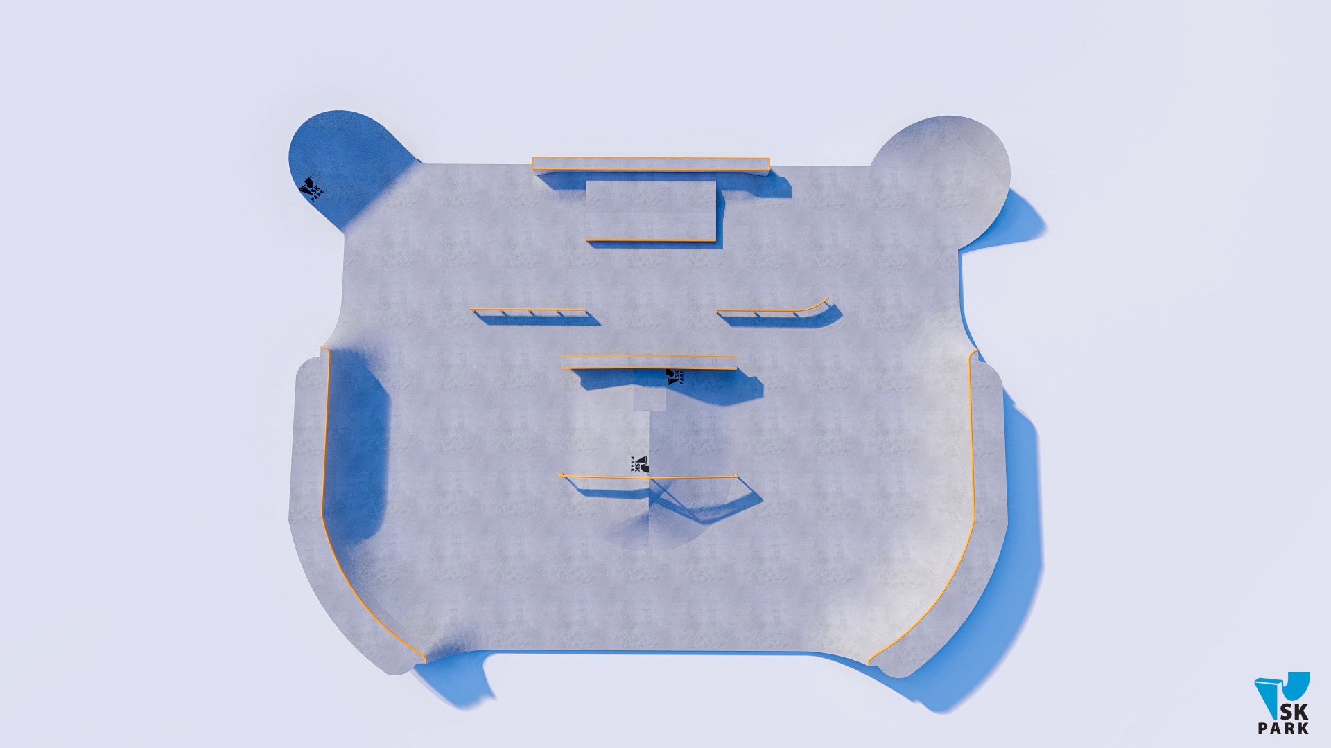Небольшая скейт площадка спроектирована таким образом, что на ней могут тренироваться райдеры начинающего и среднего уровня. Разнообразие фигур подходит практически для всех видов трюков на скейтборде. В проекте предусмотрен универсальный фанбокс-книжка с пирамидой, перилами и грайндбоксом, на котором могут тренироваться как начинающие, так и профессиональные райдеры. Грайнбокс с мэнуалпэдом, оснащенные подкатом ориентированы на креативные тренировки навыков катания во всех заявленных дисциплинах. Высоты перил и граней подходят райдерам всех дисциплин(скейтбординг, ролики, кик скутер) и возрастов. Для тренировок базовых трюков по скольжениям, в проекте предусмотрены флэт перила.