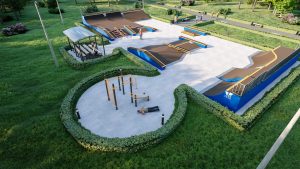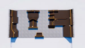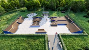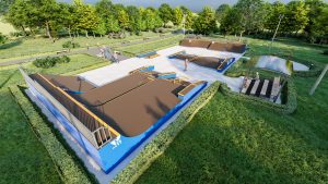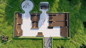 Проект скейт площадки ориентирован под олимпийскую дисциплину «скейтбординг стрит», для райдеров с начинающим и средним уровнем катания. Проект состоит из многофункциональной скейтплазы, фанбокса с пирамидой, рейлом и гранями, а также в проекте присутствует мэнуал пэд и разгонные горки разной высоты и конфигураций.