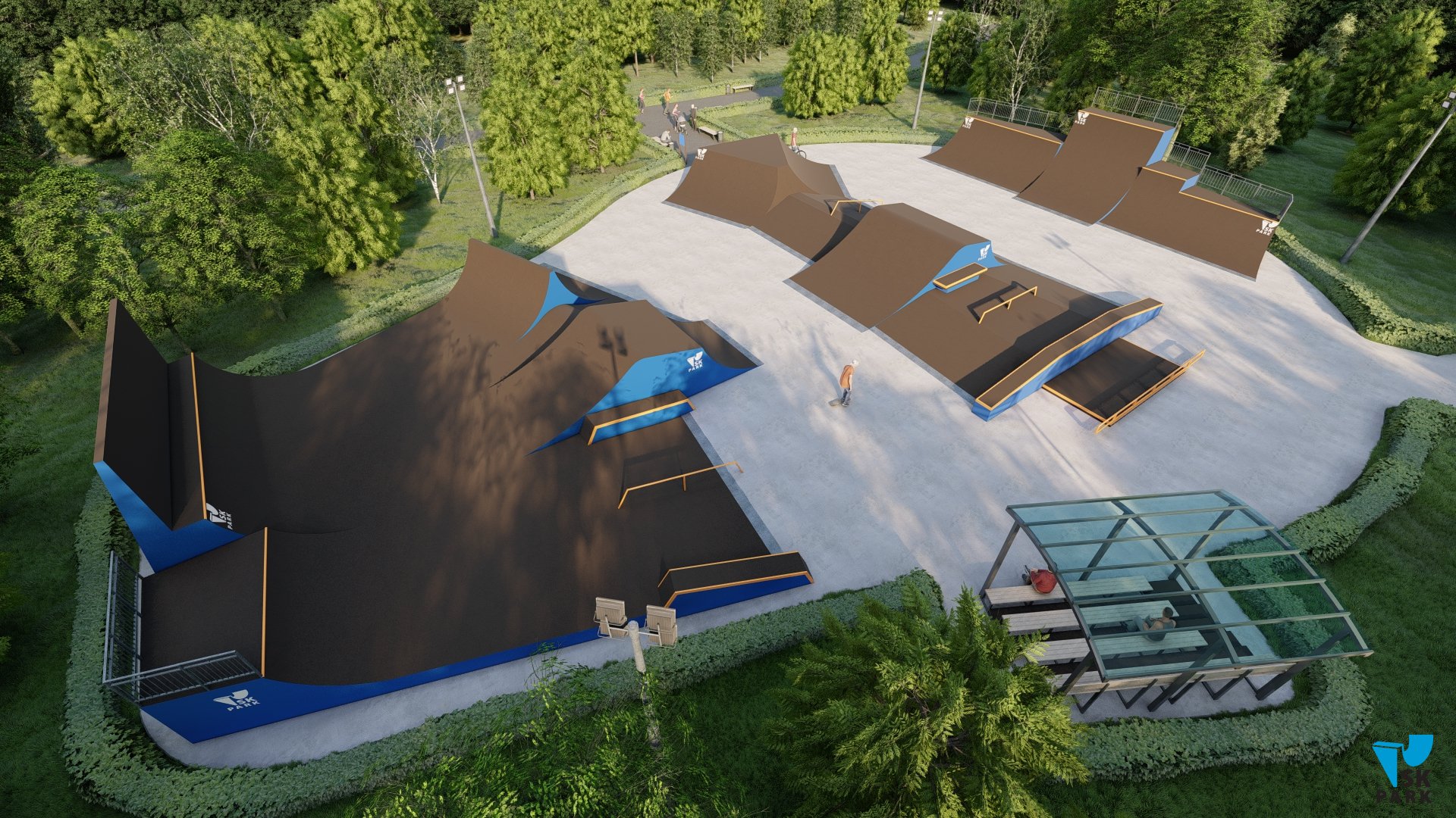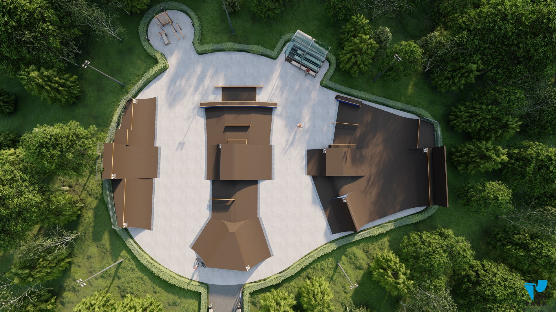 Скейтпарк спроектирован так, что райдер может ездить по кругу по всему парку, совершая трюки в связке на всех фигурах без потери скорости, что соответствует современным тенденциям катания в скейт парках.