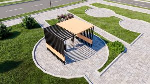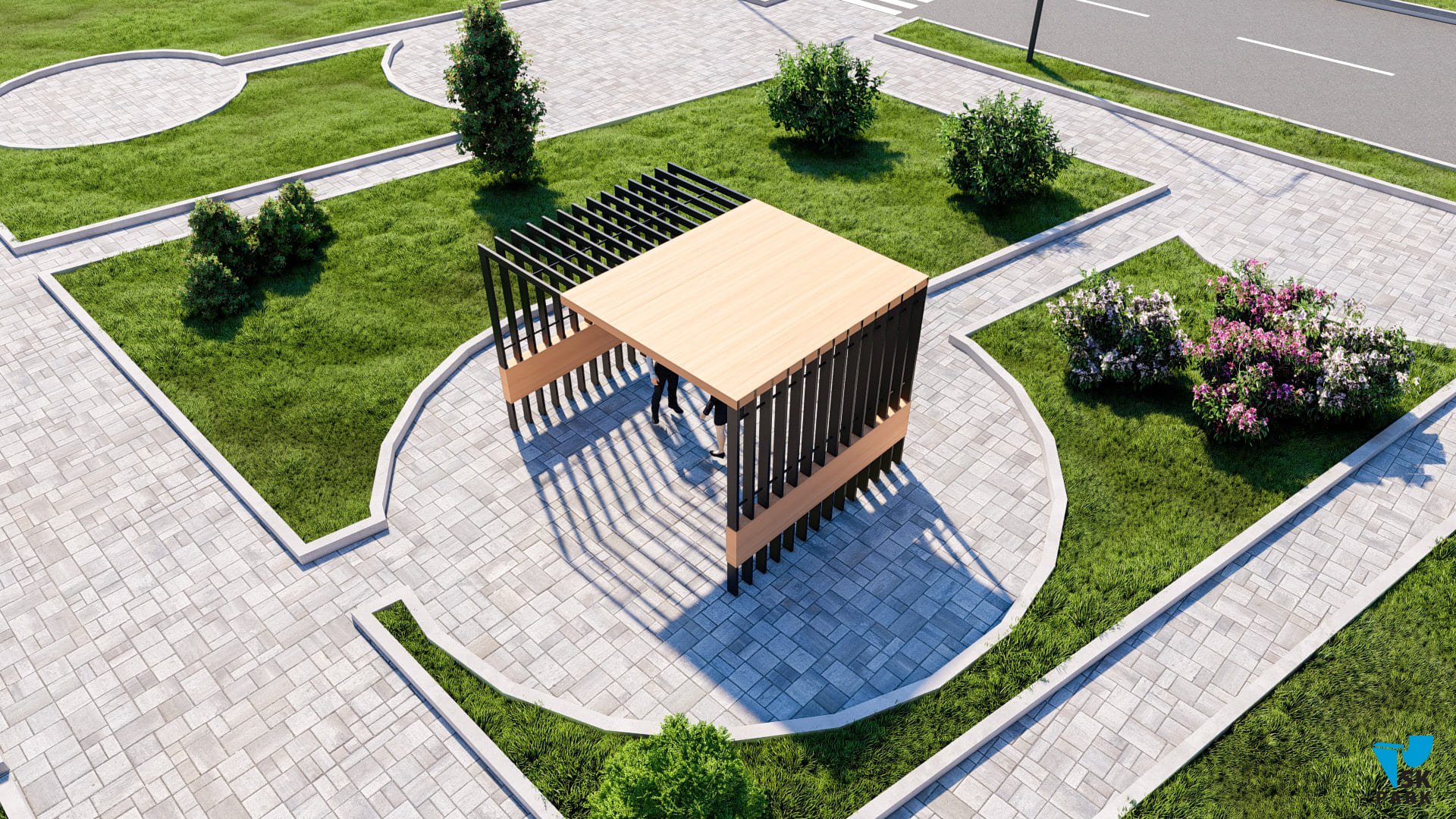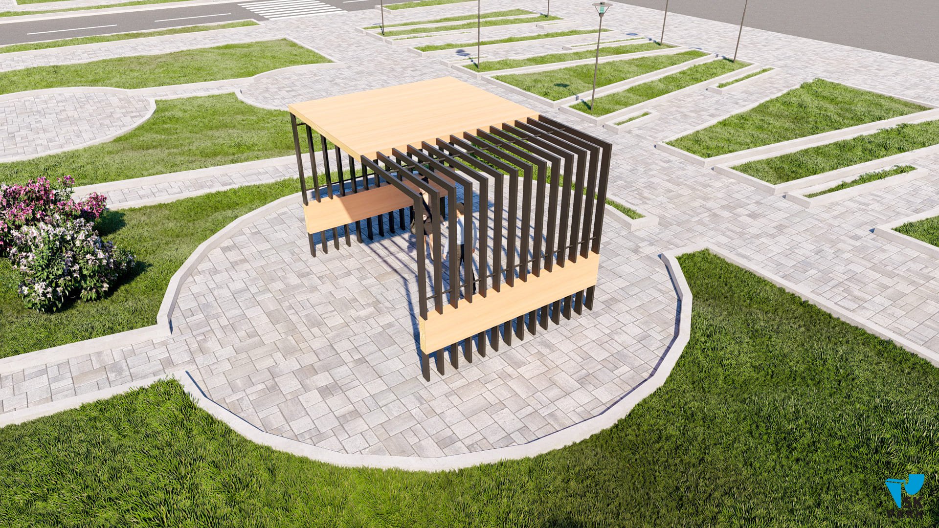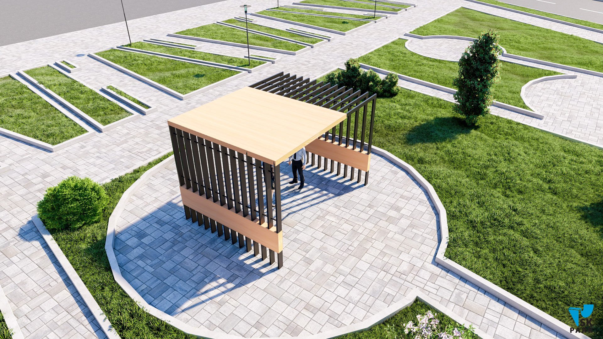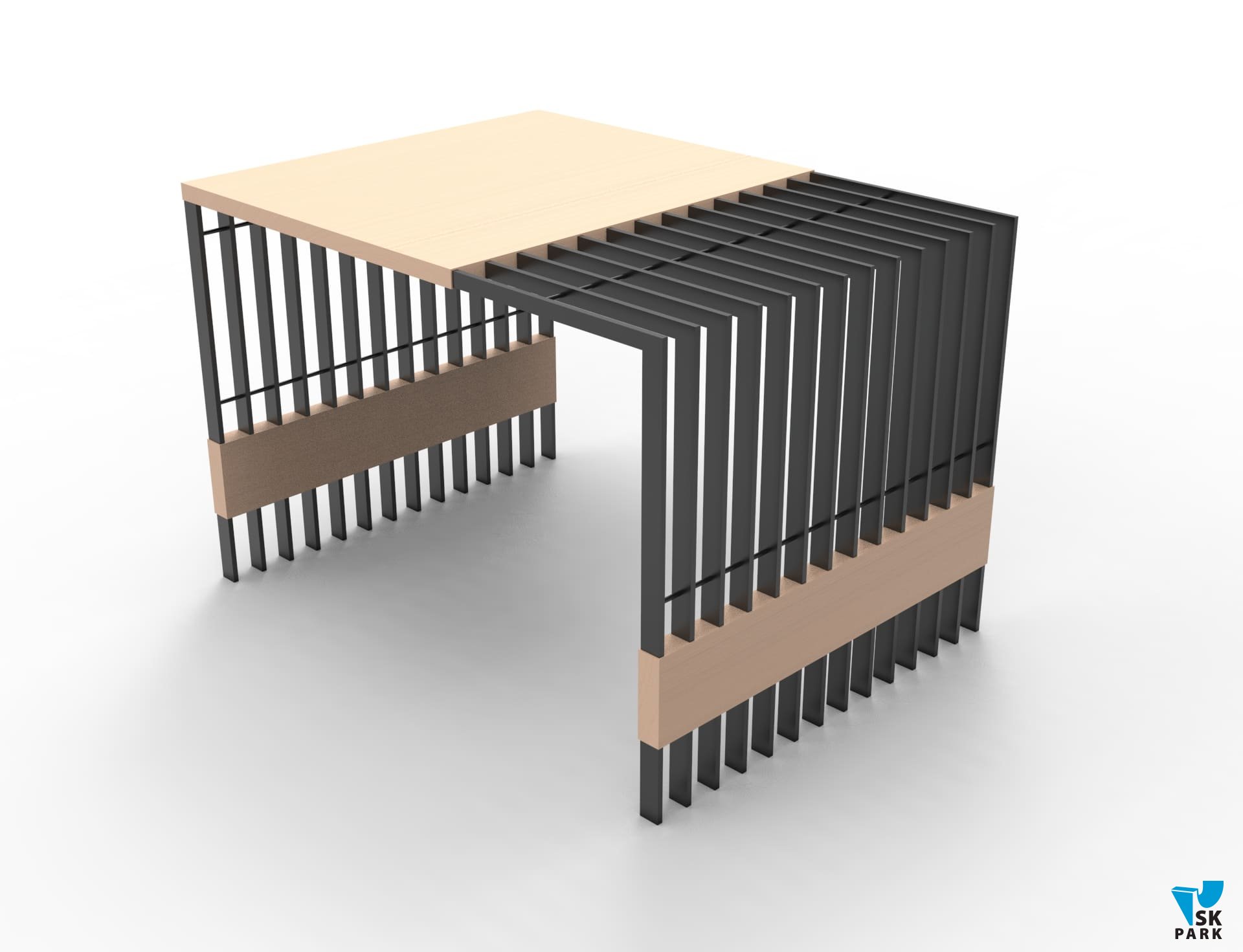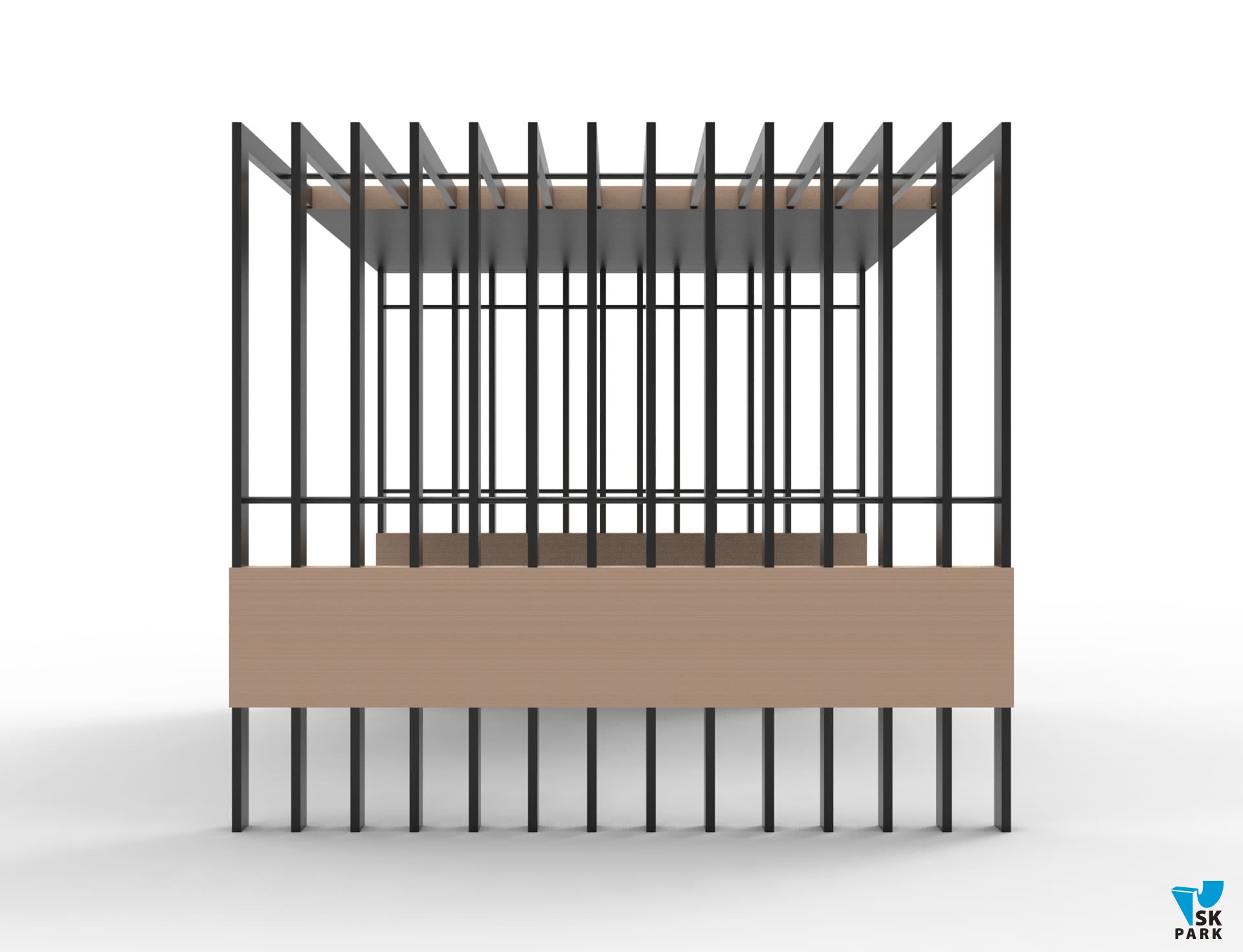 Данная пергола является собственной разработкой компании. Пергола отлично подойдет для размещения в современных общественных пространств. По желанию заказчика возможно вносить изменения/дополнения в конструкцию