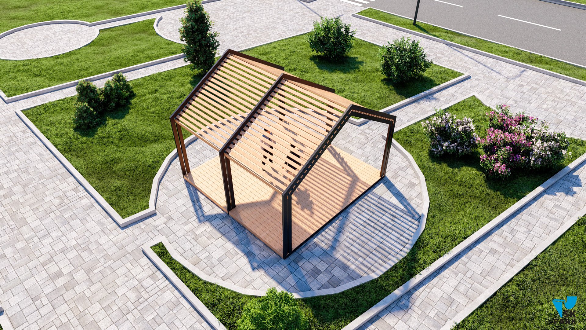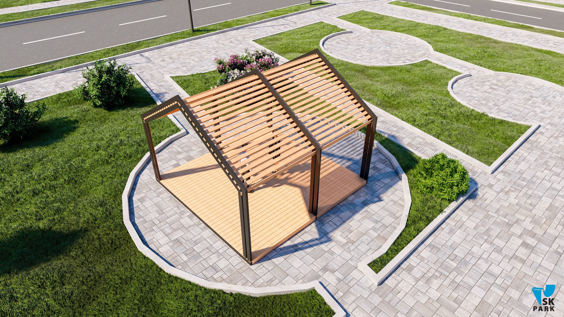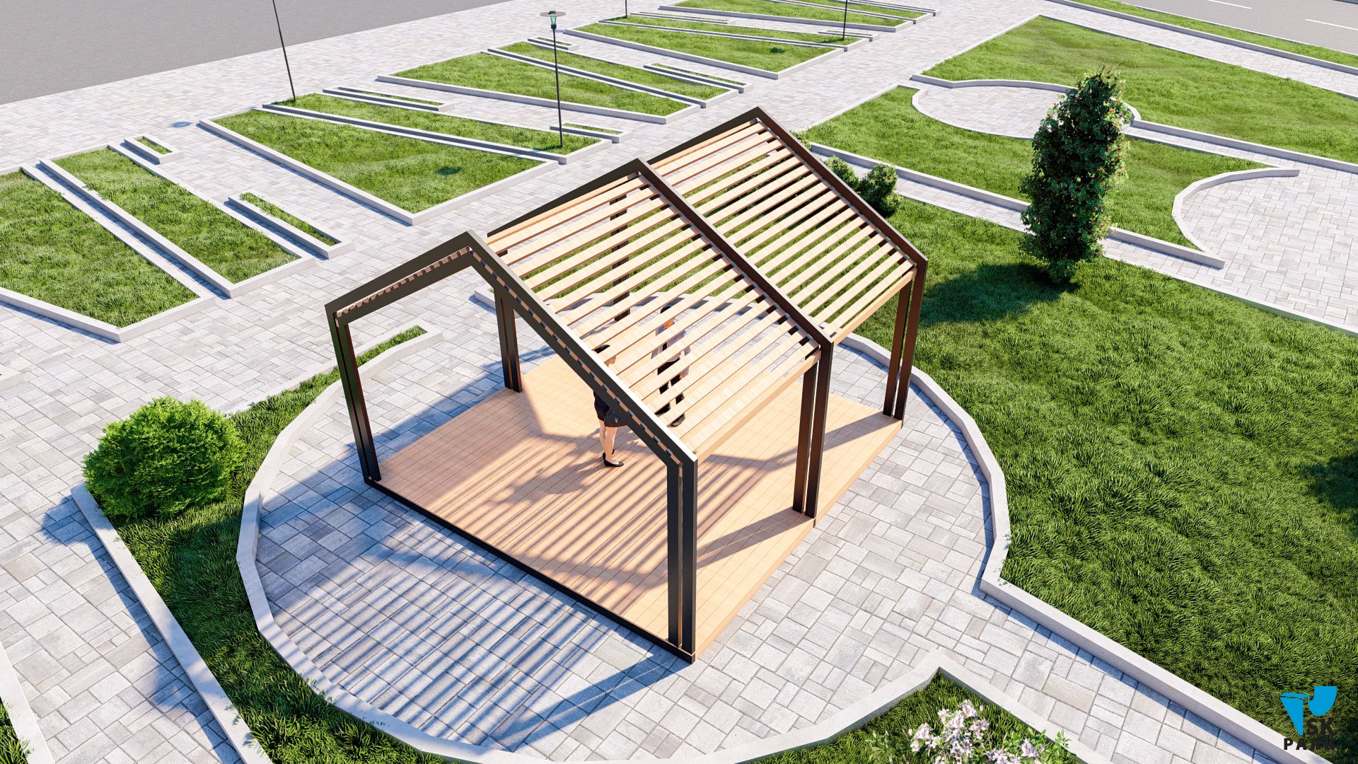 Данная пергола является собственной разработкой компании. Пергола отлично подойдет для размещения современных общественных пространств.