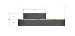 Конструкция подиума состоит из металлического каркаса, произведенного из стального листа толщиной 5 мм, деревянной решетки, произведенной из досок размером 90мм на 30мм.