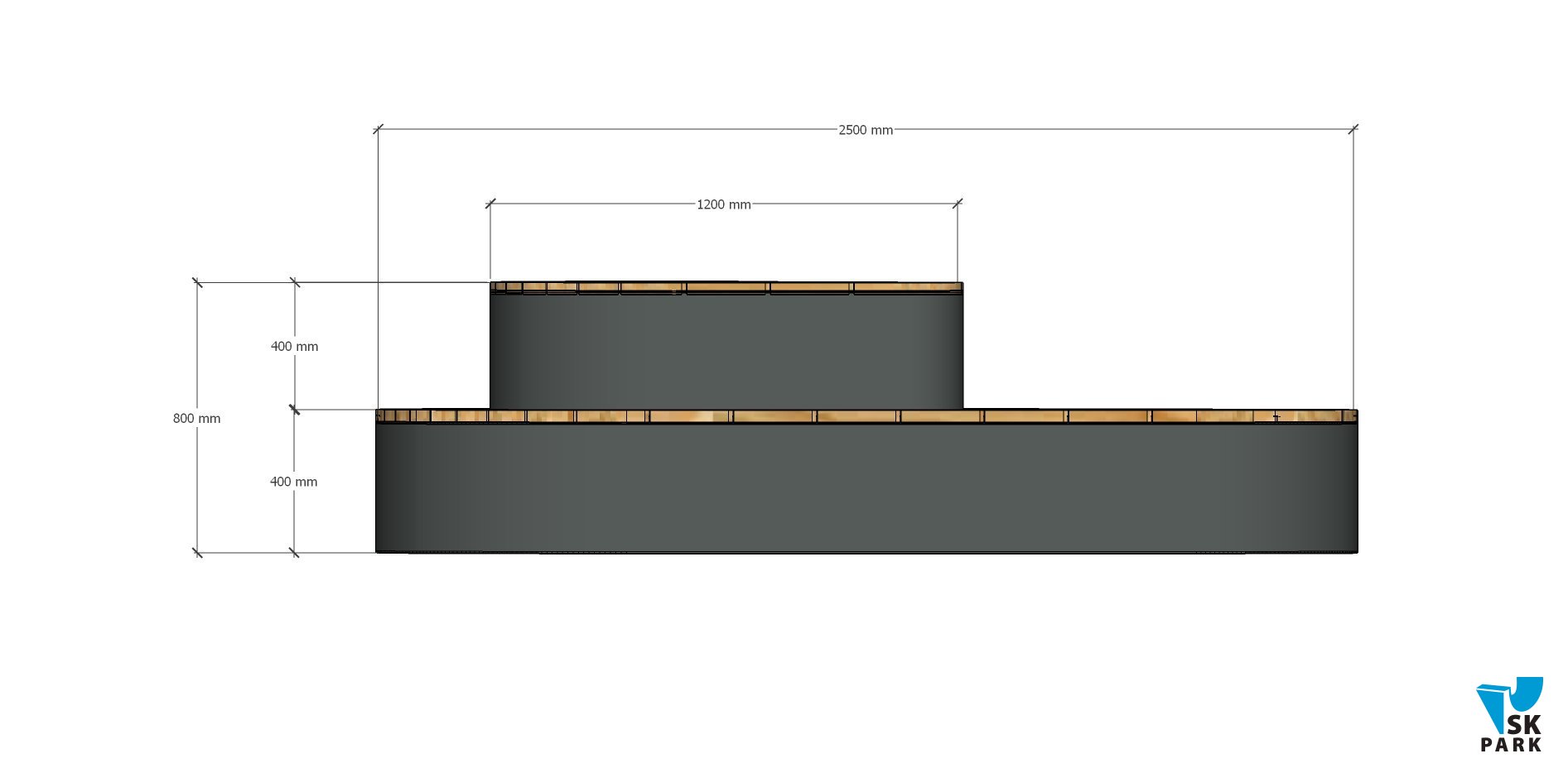 На подиуме могут комфортно расположиться единовременно до девяти человек. Удобный и простой дизайн отлично впишется на территории скейт парка и в большинство других общественных пространств.