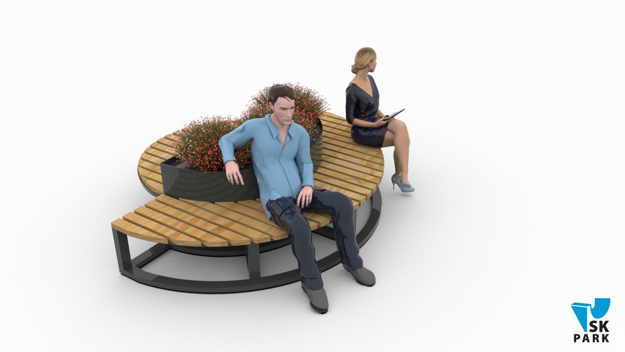 Скамья одновременно является клумбой для растений, что предает ей эстетичный внешний вид.