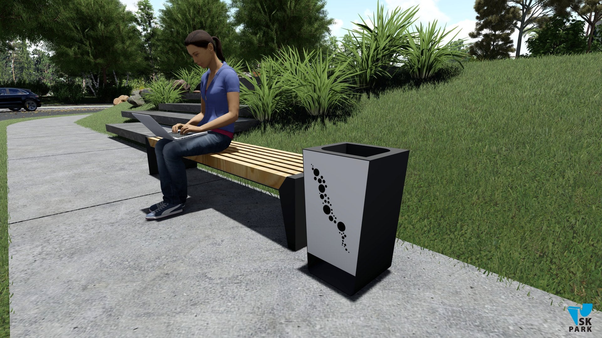 Описание: Конструкция урны состоит из металлического листа с перфорированным рисунком, изготовленным при помощи лазерной резки и деревянной решетки. Урна является неотъемлемой частью благоустройства территории. Ее дизайн будет гармонично смотреться с окружающим общественным пространством.