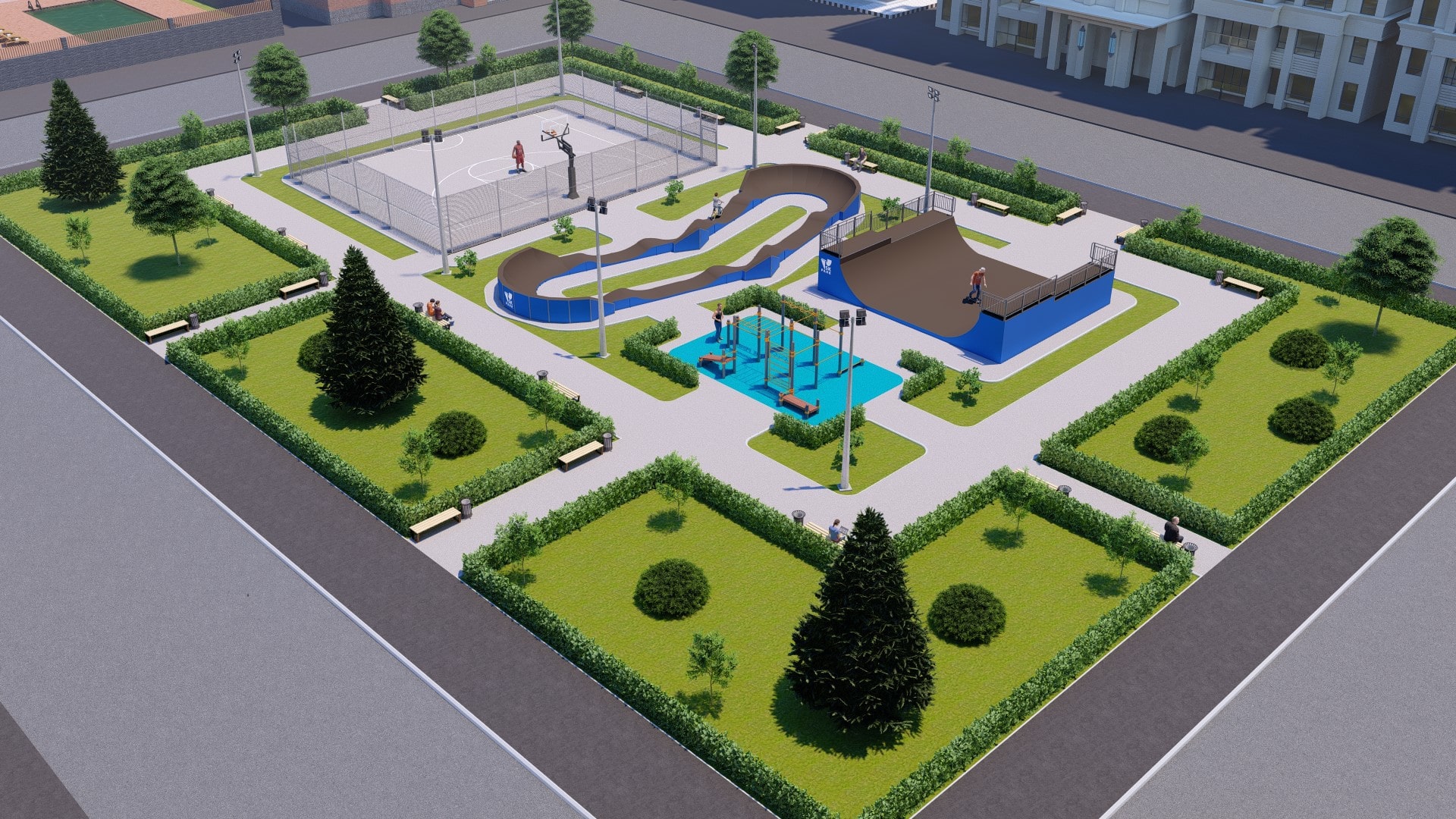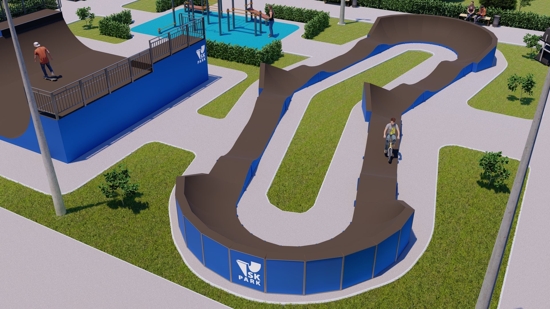 Многофункциональный памп трек, включает в себя 4 поворота под различными углами. Подходит для любого уровня райдеров. Отлично впишется на территории любого жилого комплекса или коттеджного поселка, а также для любого другого объекта обладающего подходящей площадью. Подойдет как для обычного катания, так и для проведения соревнований(памп батлов).