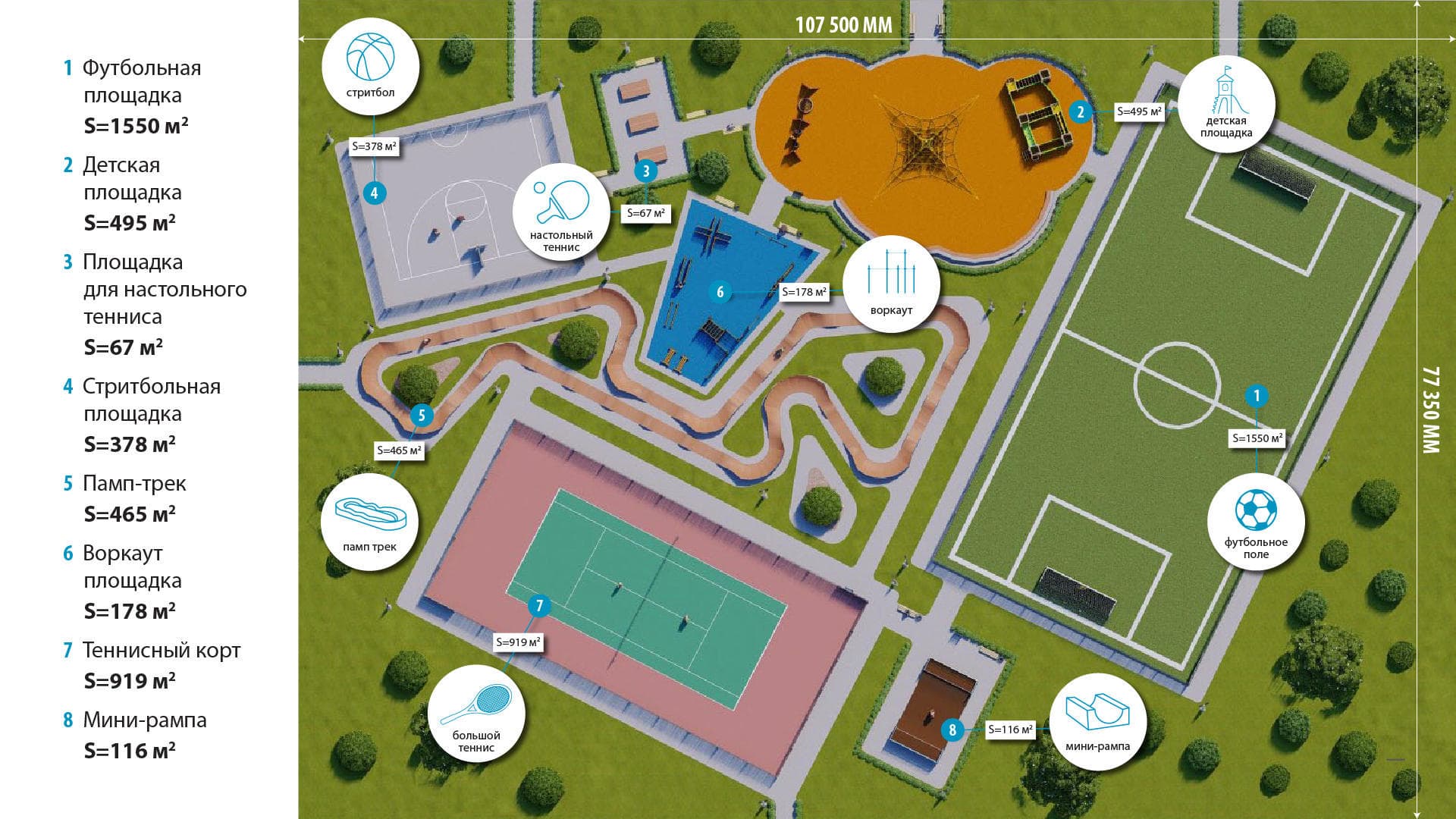 Спортивный кластер — это не просто большая площадка для тренировок, это место, где встречаются новые люди, идеи, проекты, это место где находят друзей и встречают единомышленников, делятся опытом и поддерживают друг друга. Говоря о социальной пользе таких спорткомплексов, стоит отметить, что выбор доступных дисциплин позволяет разнообразить в том числе и семейный досуг — если аудитория скейт парка или паркур секции это в основном молодежь, то те же стритбол, воркаут и теннисные площадки представляют интерес для представителей старших поколений.