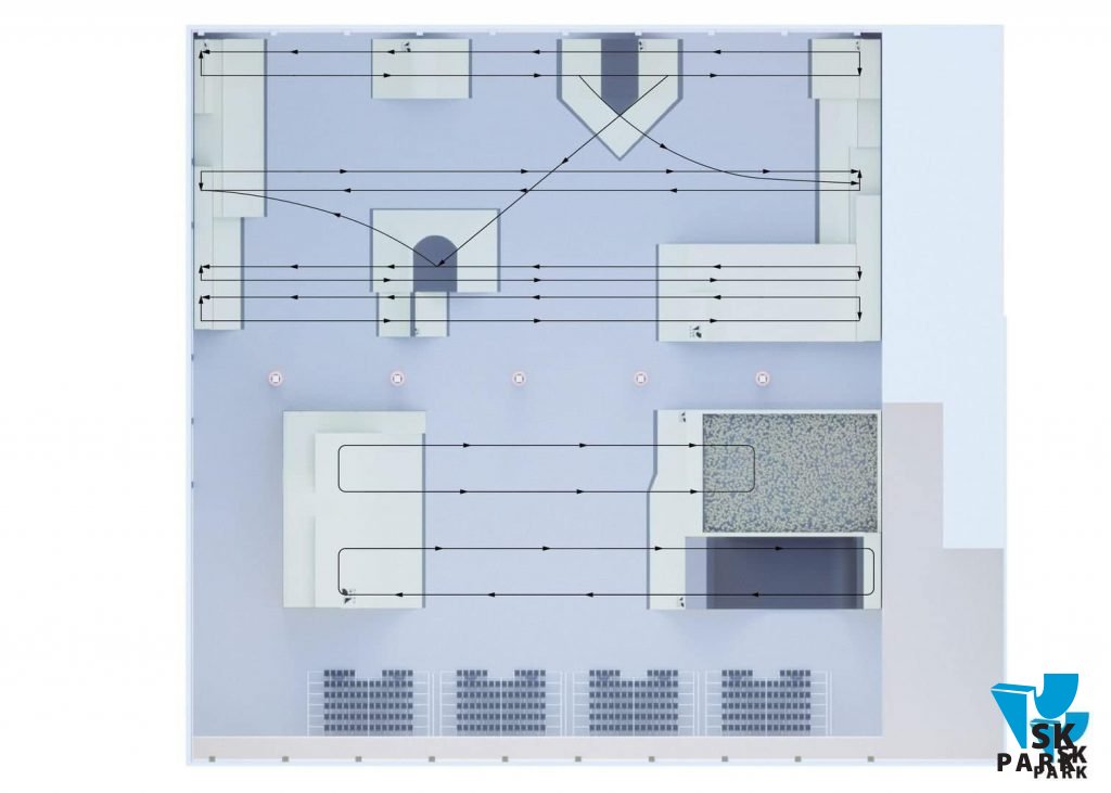 Скейт парк - это не детская игровая площадка, украшающая ландшафт песочницами, горками и качелями, поэтому принцип размещения оборудования на скейт площадке, так же не случаен, как проектирование автомобильных дорог и транспортных развязок в мегаполисе.