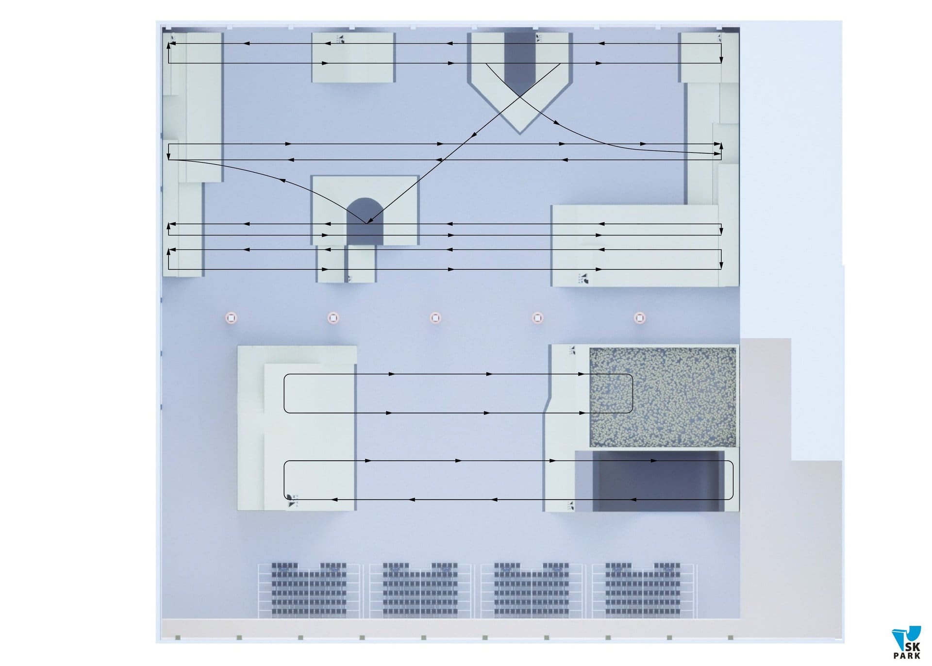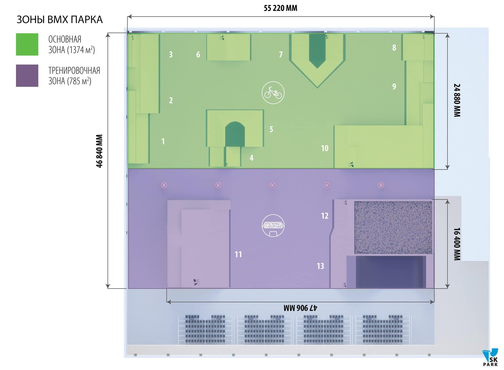 Проектирование и строительство скейтпарков – важный пункт. Но не менее важно и то, как фигуры соотносятся друг с другом. Неопытные поставщики скейт парков часто не заботятся о размещении фигур, а бывает за частую просто располагают их как малые архитектурные формы. Желательно располагать их так, чтобы все фигуры использовались с максимальной пользой(желательно разделение на зоны) и удовольствием от катания.