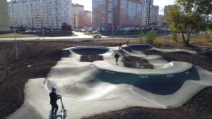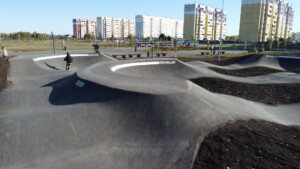 Памп-трек представляет собой замкнутую трассу, оснащенную уклонами и поворотами, рассчитанную на катание практически в любых дисциплинах — ВМХ/МТВ, скейтбординг, ролики, кик скутер. Такой тип площадки универсален, одинаково подходит и взрослым и детям — в 5 лет можно вполне уверенно рассекать на самокате как под присмотром взрослых, так и при их участии. Асфальтовое покрытие трассы позволяет эксплуатировать площадку практически бесшумно, это важно в случаях, когда в непосредственной близости расположен жилые дома, образовательные учреждения и прочие объекты инфраструктуры не особо приветствующие шумное соседство. Памп-трек, как и прочие виды скейт-площадок невероятно популярны, прекрасно вписываются в современный городской ландшафт и отвечают задачам благоустройства городской среды.