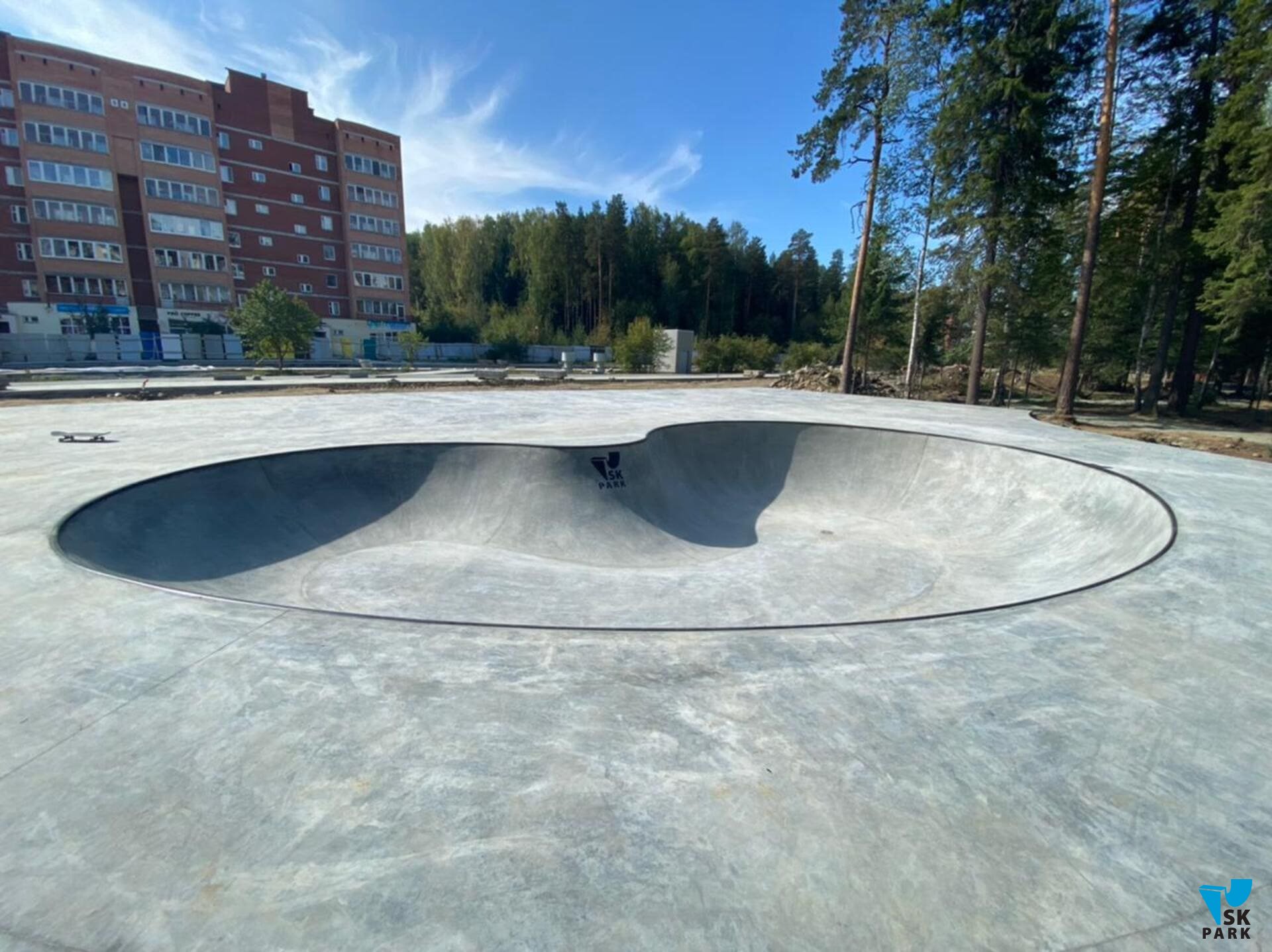 В качестве основы скейт парка на площади 300 кв.м. была залита армированная бетонная плита толщиной 150 мм., поверх который мы установили каркасные фигуры — квотерпайп, бэнк, фанбокс с перилами и боксом, а также прямой бокс и флэт-перилу для тренировок прыжков и скольжений начинающими райдерами. В отдельной зоне мы построили бетонный боул — это изюминка нового скейт парка в Новоуральске. Бетонный боул общей площадью 167 кв.м. сам по себе является полноценным скейт парком — в нем предусмотрены хип для прыжков и 2 чаши. Архитектура боула позволяет оттачивать мастерство не только рядовым райдерам, но и спортсменам Олимпийской дисциплины Скейтбординг «Парк». Умение набирать скорость и не сбавлять её во время проезда без дополнительных отталкиваний и выполнять «трансферные» прыжки из одной плоскости в другую — это навыки без которых не обойтись, не говоря о таких базовых элементах как развороты, съезды и заезды в радиус – все эти умения можно освоить благодаря катанию в боуле.