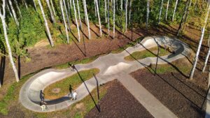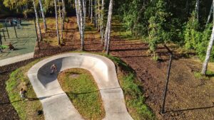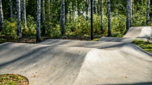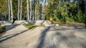 Новый бетонный памп трек построен в городе Ишим в 2024 году и направлен на широкую аудиторию райдеров. Уровень сложности – начальный и средний, что обусловлено сравнительно небольшой высотой и протяженностью трассы.
