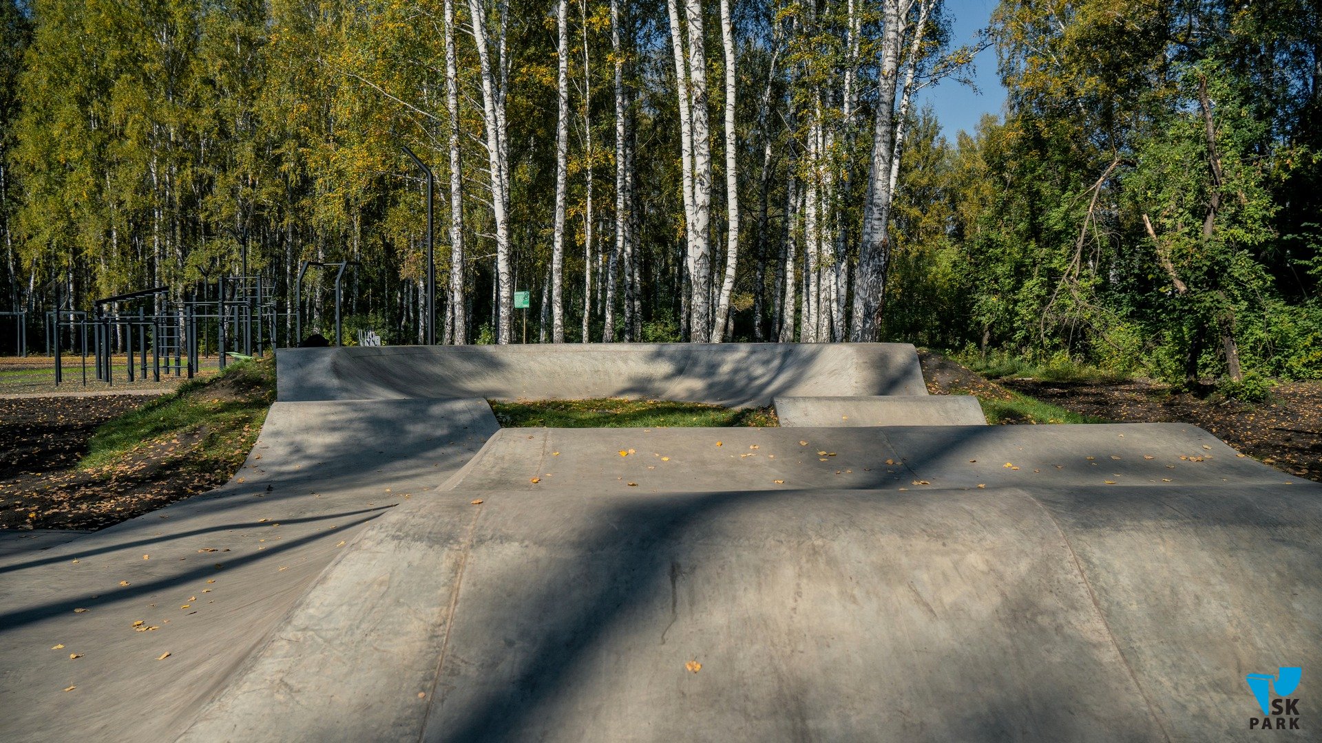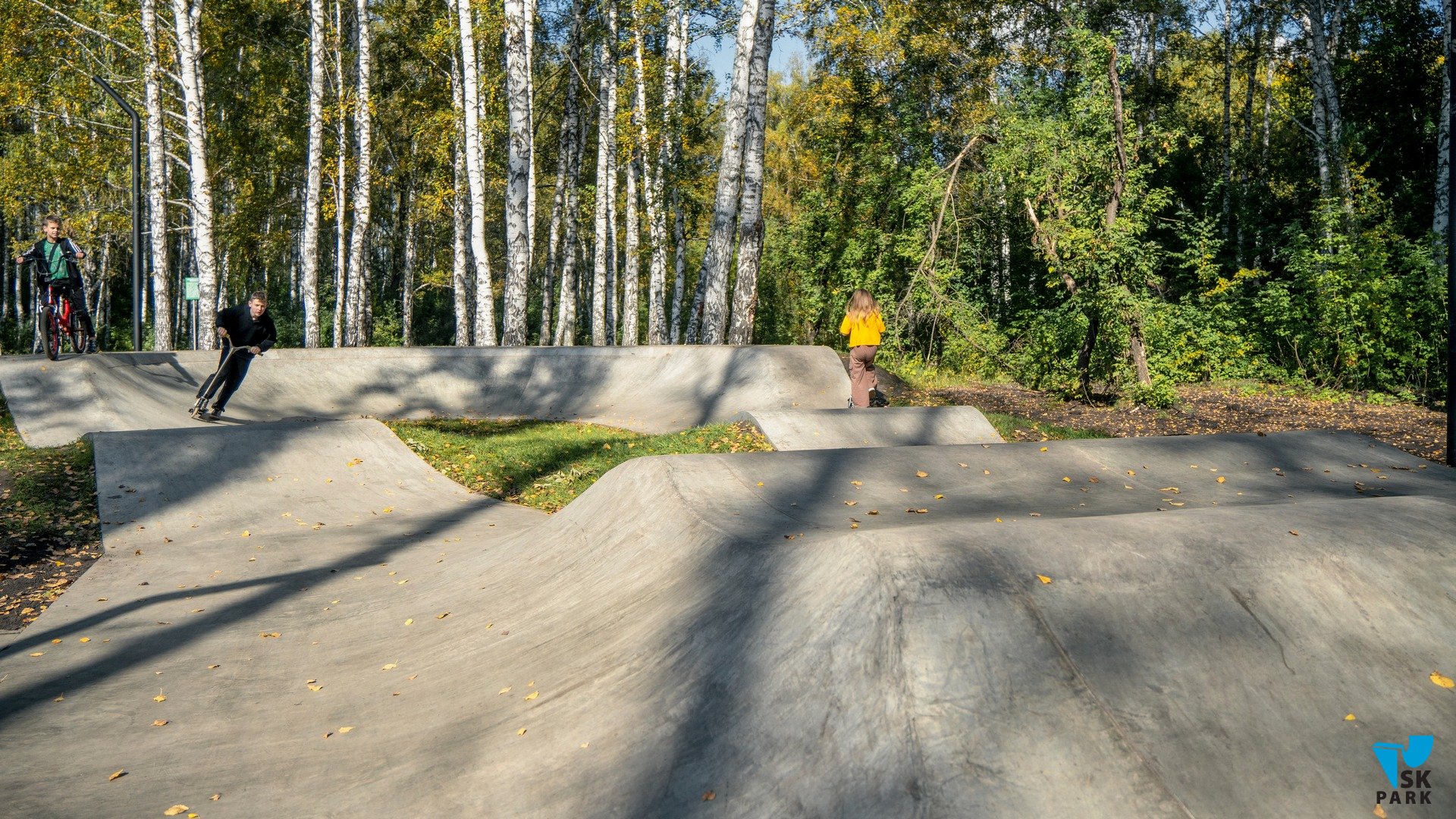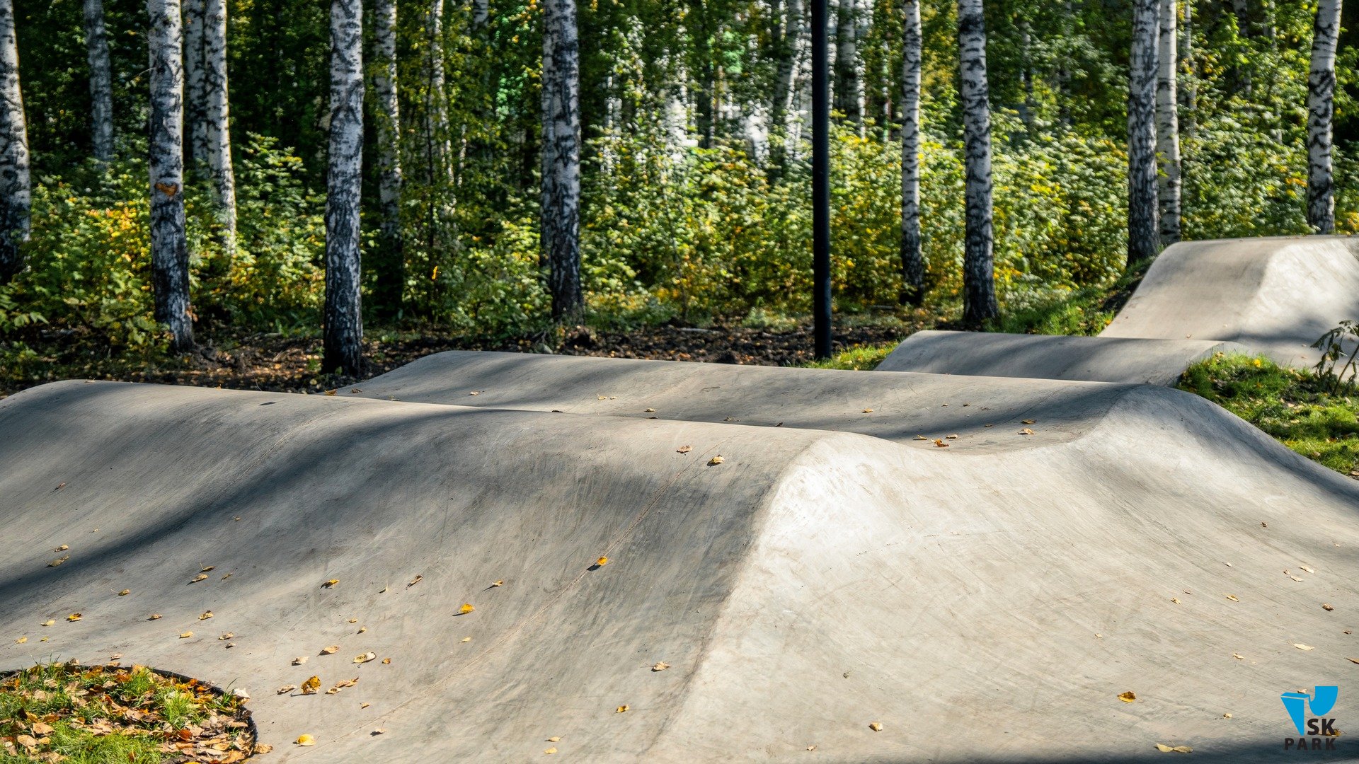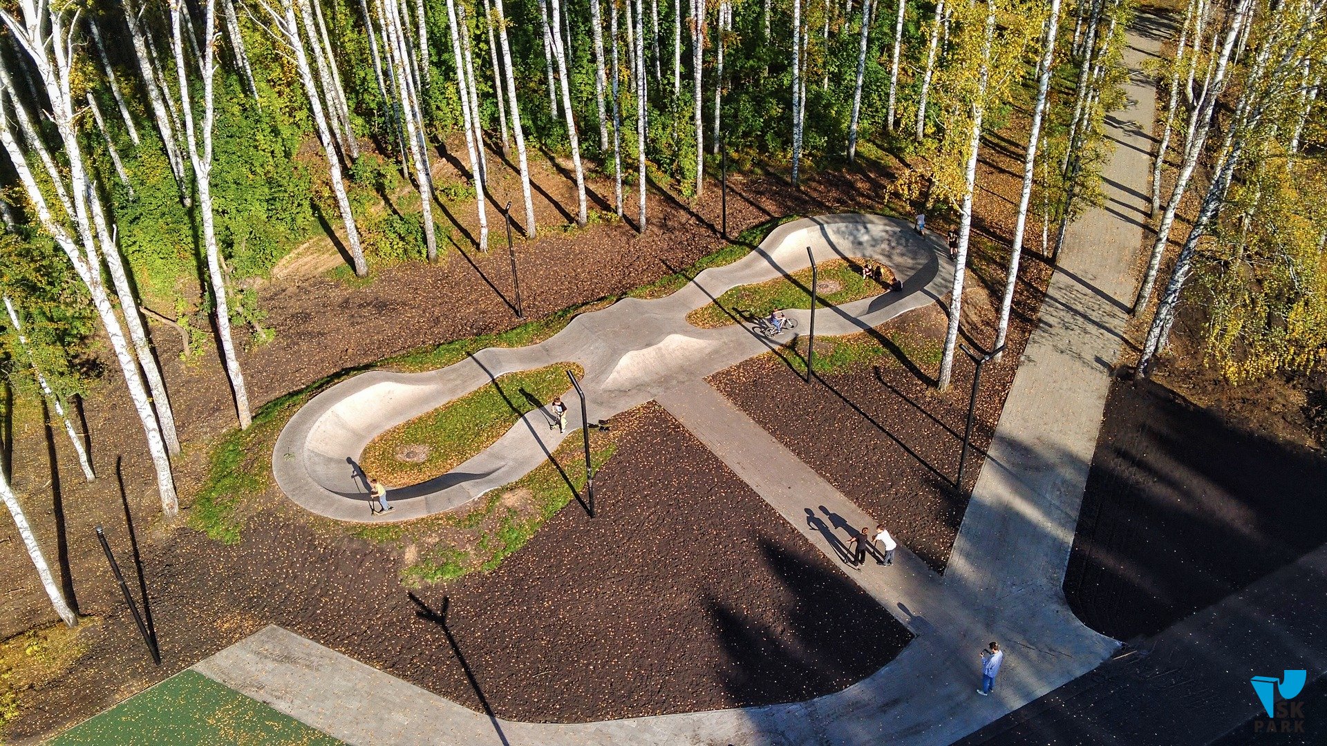 Точками старта для катания могут служить как входная группа, так и широкий стол в центре памп трека, с которого предусмотрен плавный съезд.