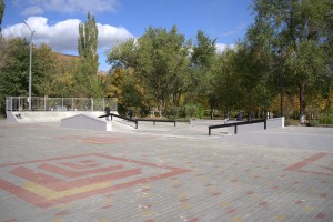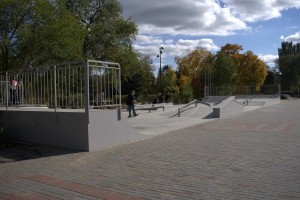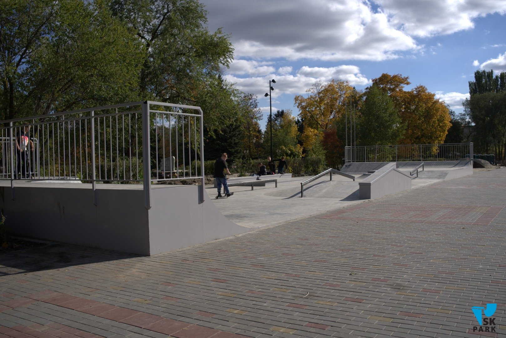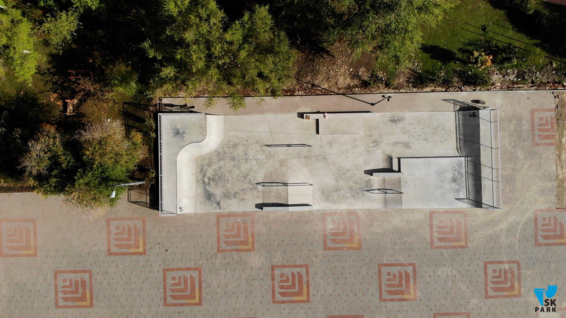 Скейтпарк площадью 350 кв. м объединяет в себе скейтплазу и такие фигуры как фанбокс-"книжка" с грайндбоксом и пирамидой, мануалпэд с грайндбоксом и различные перила. Скейтплаза оснащена пирамидой, еврогэпом, перилами и боксами разной высоты и конфигурации. Для набора скорости скейт-парк оснащен изогнутыми квотерпайпами и бэнками с трансферами.