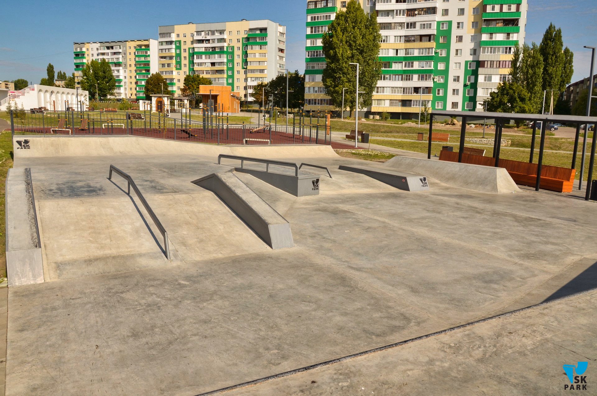 Скейт парк площадью 650 кв.м. состоит из двух зон — это боул и сектор для катания в дисциплине "Стрит". Двухуровневый боул сам по себе является полноценной скейт площадкой и ориентирован на катание в дисциплине скейтбординг "парк". Наличие плавного въезда позволяет новичкам осваивать базовые навыки, а более опытные райдеры могут оттачивать связки трюков ограничиваясь лишь собственной фантазией и уровнем мастерства. Двухуровневая Стрит-зона оснащена базовыми фигурами для катания в стиле "стрит", а также малой и средней хаббами.