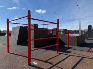 • Скейт-парк и паркур площадка изготовлены на металлическом каркасе;
