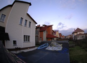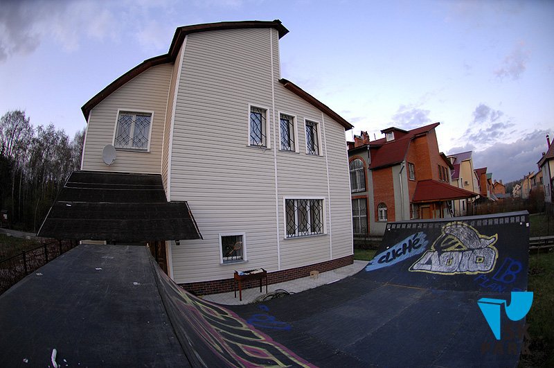 Мини халф-пайп (минирампа) на участке, в одном из коттеджных поселков подмосковья.