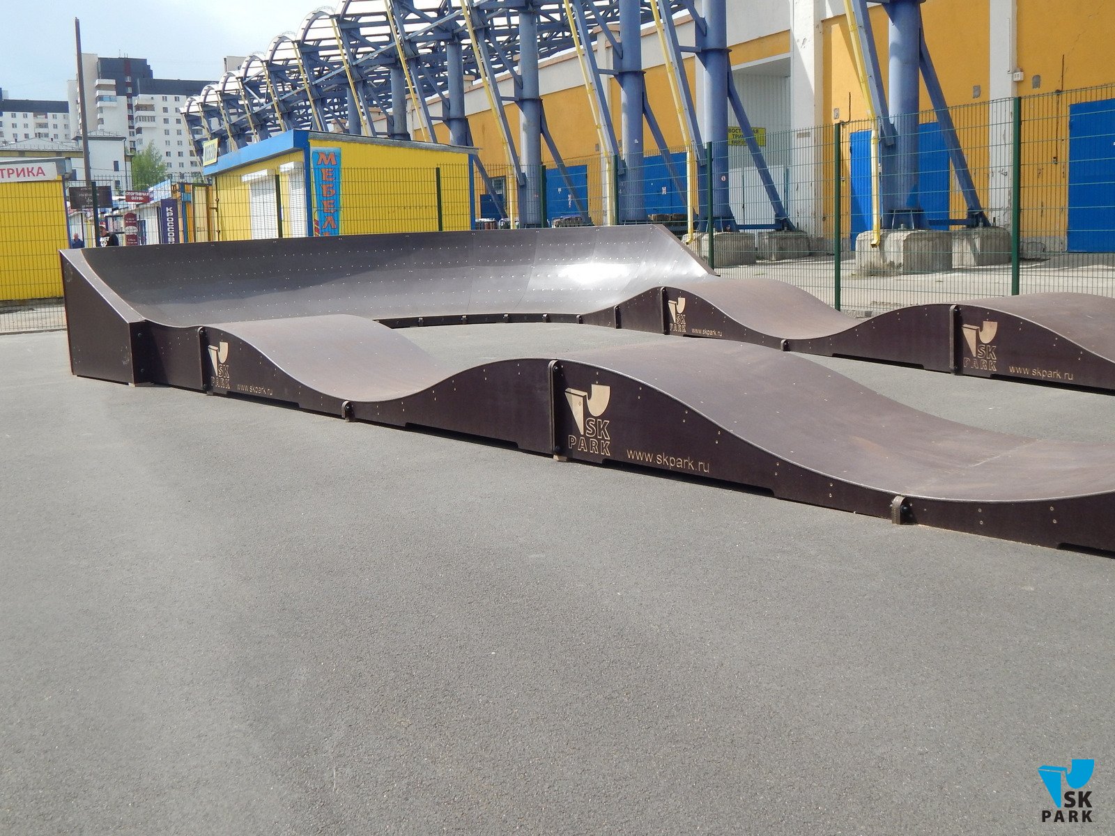 Компания SKPARK осуществила разработку проекта, а так же обеспечила производство, поставку и сборку памп-трека и мини-рампы.