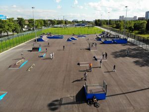 Скейт парк, расположенный на 2700 кв. м. создан для таких дисциплин как скейтбординг, ролики, кик скутер, BMX/MTB и вмещает до 60 одновременно катающихся райдеров, начального и среднего уровня, но предусмотрена зона и для тех, кто желает попробовать себя в экстремальном спорте впервые. Все оборудование соответствует мировым стандартам безопасности и создано для максимально комфортной эксплуатации. Основу большинства фигур скейт парка составляет деревянный каркас, обшитый финской ламинированной фанерой, на рабочую плоскость фигур нанесено рифление, по периметру всей площадки установлено металлическое ограждение.