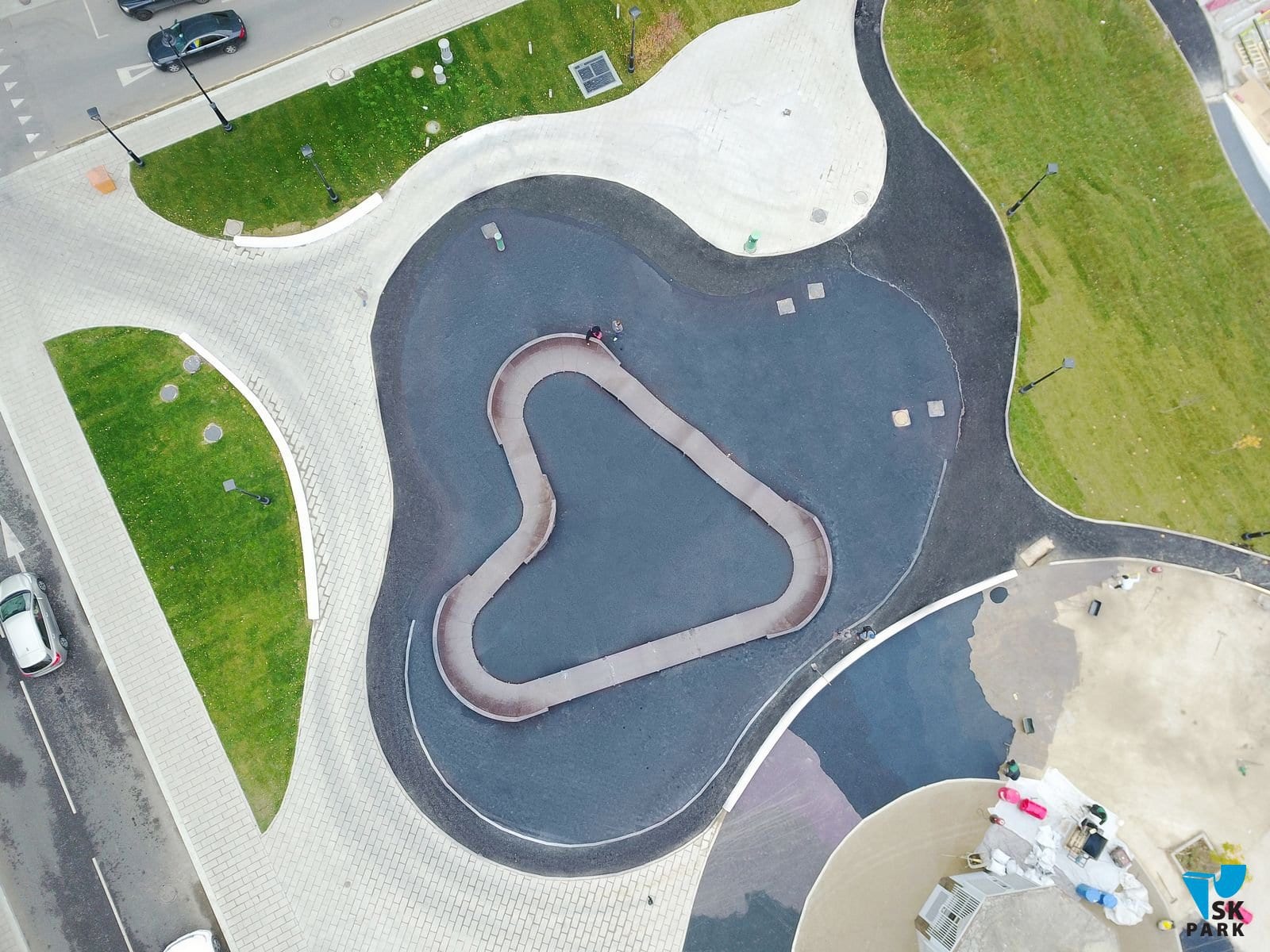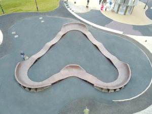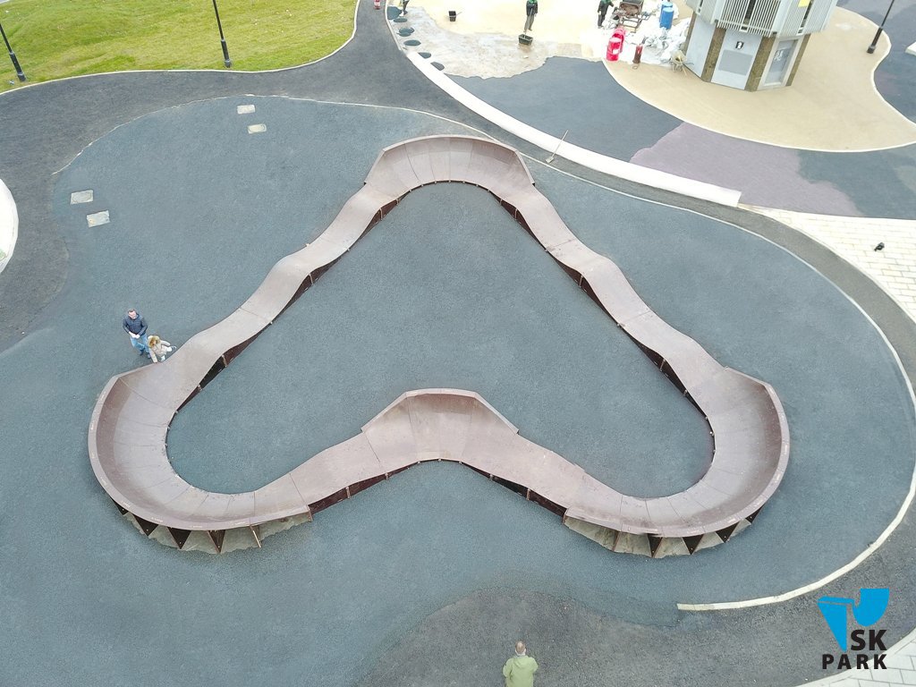 Общая длина трассы установленного памп трека составляет – 50 метров. Памп трек имеет 4 поворотных угла для изменения направления движения. Подходит для любого уровня райдеров: BMX/MTB, скейтбординг, BMX/MTB, ролики, кик скутер. Отдельно хотим отметить его необычную геометрию, которая повторяет символ сердца.