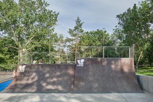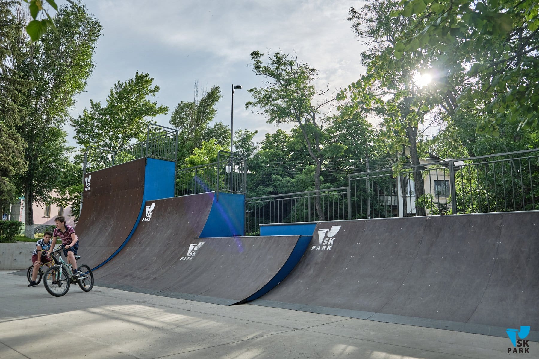 В этот раз инженеры SK PARK разработали индивидуальный проект, исходя из требований Заказчика, а также размеров площадки. Скейт парк получился по-настоящему универсальным! Комплекс фигур установлен на бетонное основание, подготовленное ООО «Стройреконструкция» самостоятельно. Два Фанбокса спроектированы не похожими друг на друга с целью повторить все стандартные образы уличных препятствий – пролёты, перила, парапеты и наклонные грани. На Плазе также возможно изучение базовых трюков по прыжкам и скольжениям. Спайн плавно переходящий во Флайбокс в центре площадки создан для эффектных вылетов со всеми возможными комбинациями эйр трюков. Радиусы по всему скейтпарку обеспечивают райдерам оптимальный разгон на центральные фигуры. Отдельно стоит выделить мини-рампу. Её высота – 1,2 метра – оптимальна для обучения множеству различных трюков, не боясь падений с большой высоты. Комплекс оборудования направлен на развитие навыков катания во всех экстремальных дисциплинах: скейтбординг, ролики, кик скутер, а также BMX/MTB.