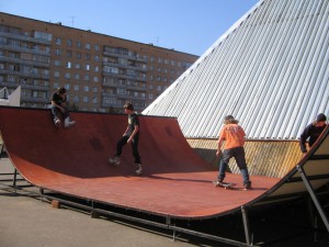 В Мае 2007 года,в г.Пенза, нашей компанией был построен и доставлен мини халф-пайп. Фигура распологается на крыше самого крупного в г.Пенза торгового центра “Высшая Лига”.