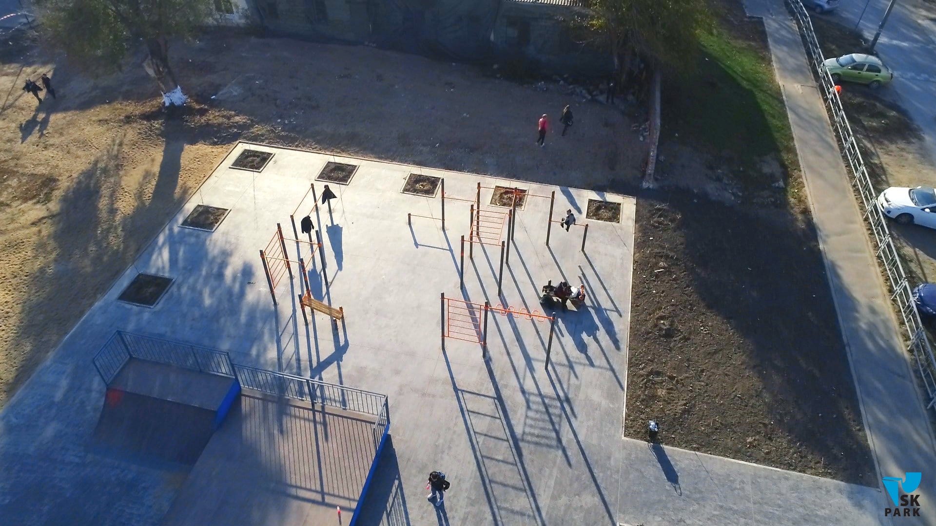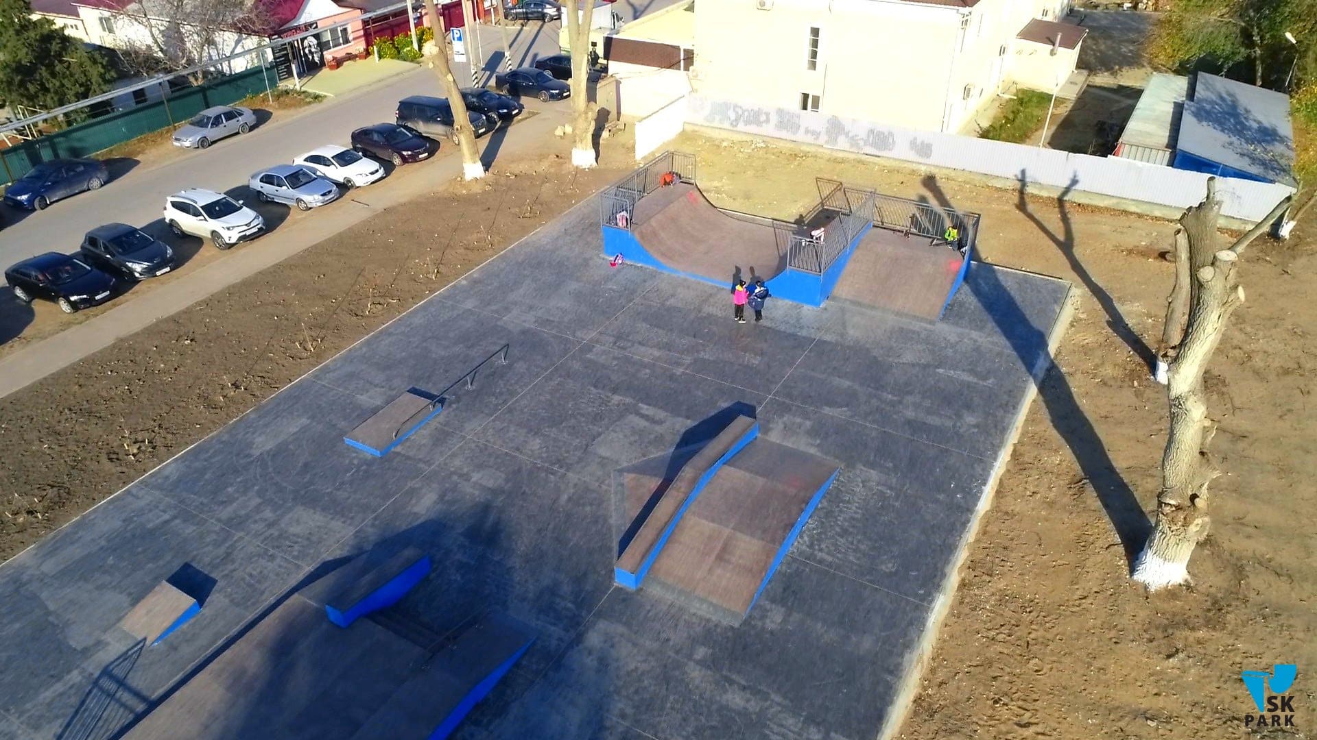 Cкейт парк - за основу был взят один из типовых проектов от компании SK PARK. На площади 545 кв.м установлены фанбокс, скейт плаза, квотерпайп и мини-рампа М2 шириной почти 5 метров, а так же линия фигур для изучения базовых трюков по прыжкам и скольжениям. Площадка рассчитана на райдеров начального и среднего уровня в таких дисциплинах как скейтбординг, ролики, кик-скутер и вмещает до 15 человек. Фигуры скейт парка собраны на деревянном каркасе, предварительно обработанном огне- био- защитным и антикоррозийным составом. Рабочая поверхность обшита ламинированной фанерой с антискользящим покрытием, крепежные элементы оцинкованы и устойчивы к воздействию окружающей среды.