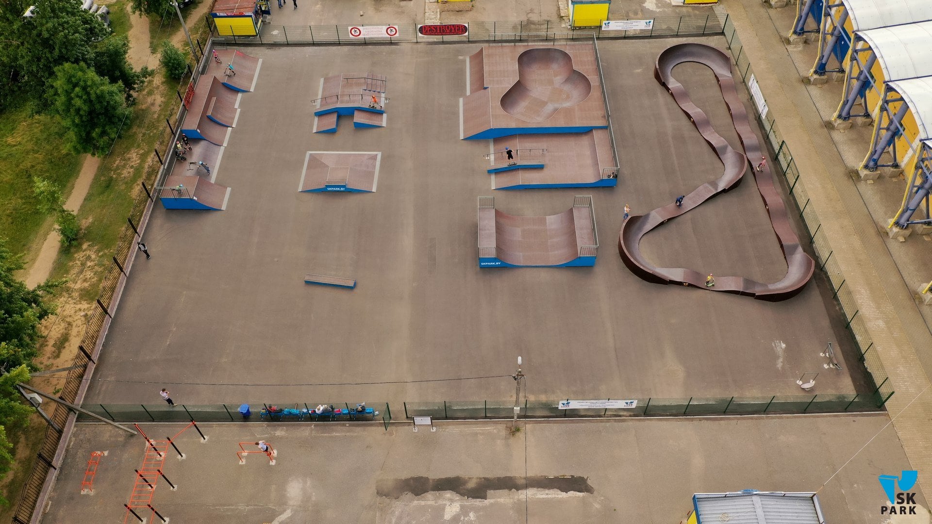 Скейт парк состоит из 10 фигур и включает в себя две основных зоны, это - боул и стрит.