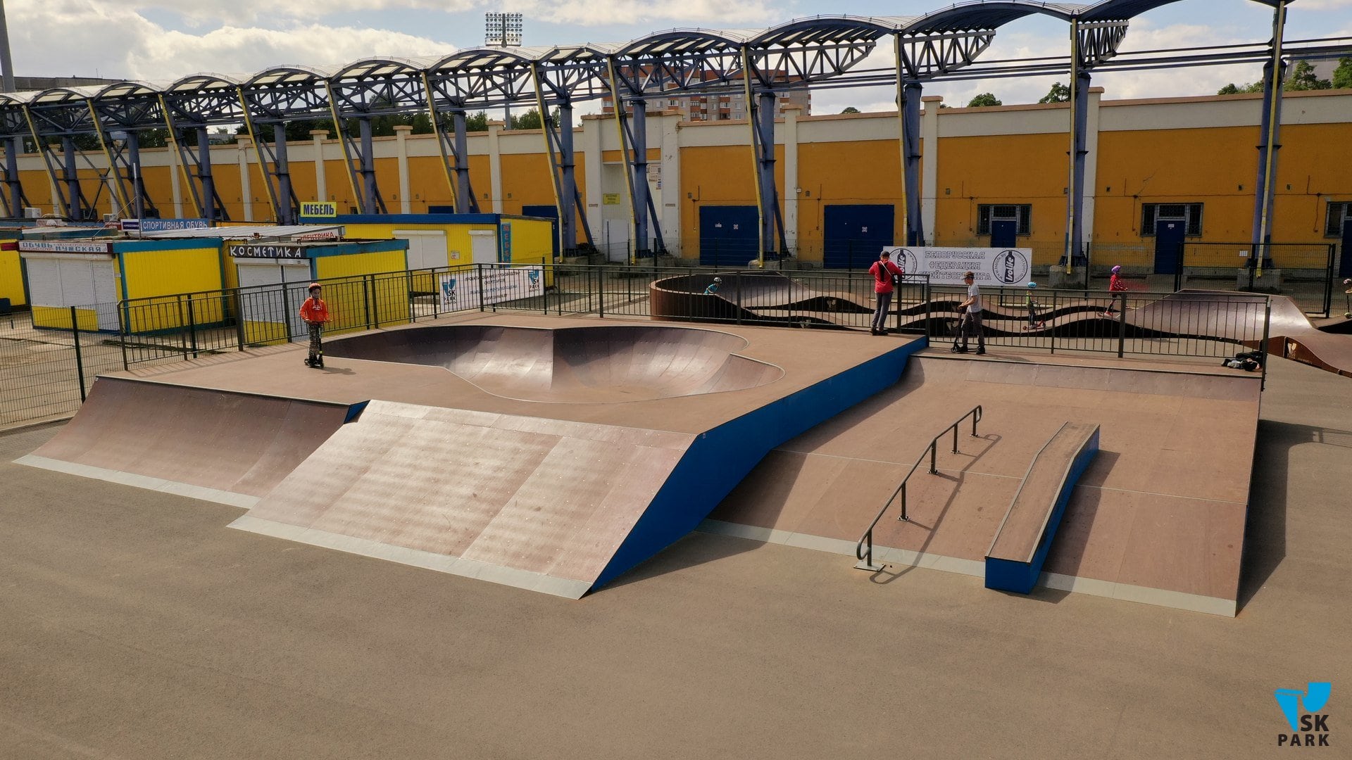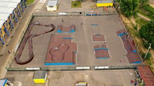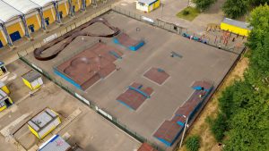Скейт парк, площадью - 650 кв.м. является частью будущего многофункционального комплекса для занятий экстремальными видами спорта и подходит для райдеров таких дисциплин как скейтбординг, кик скутер, ролики.