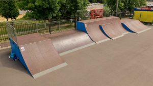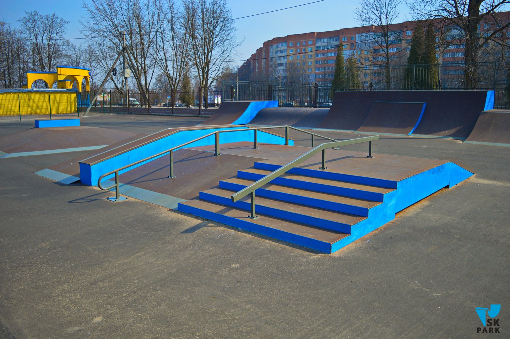 Скейт площадка реализована на базе типового решения SK 31-21 из каталога компании.