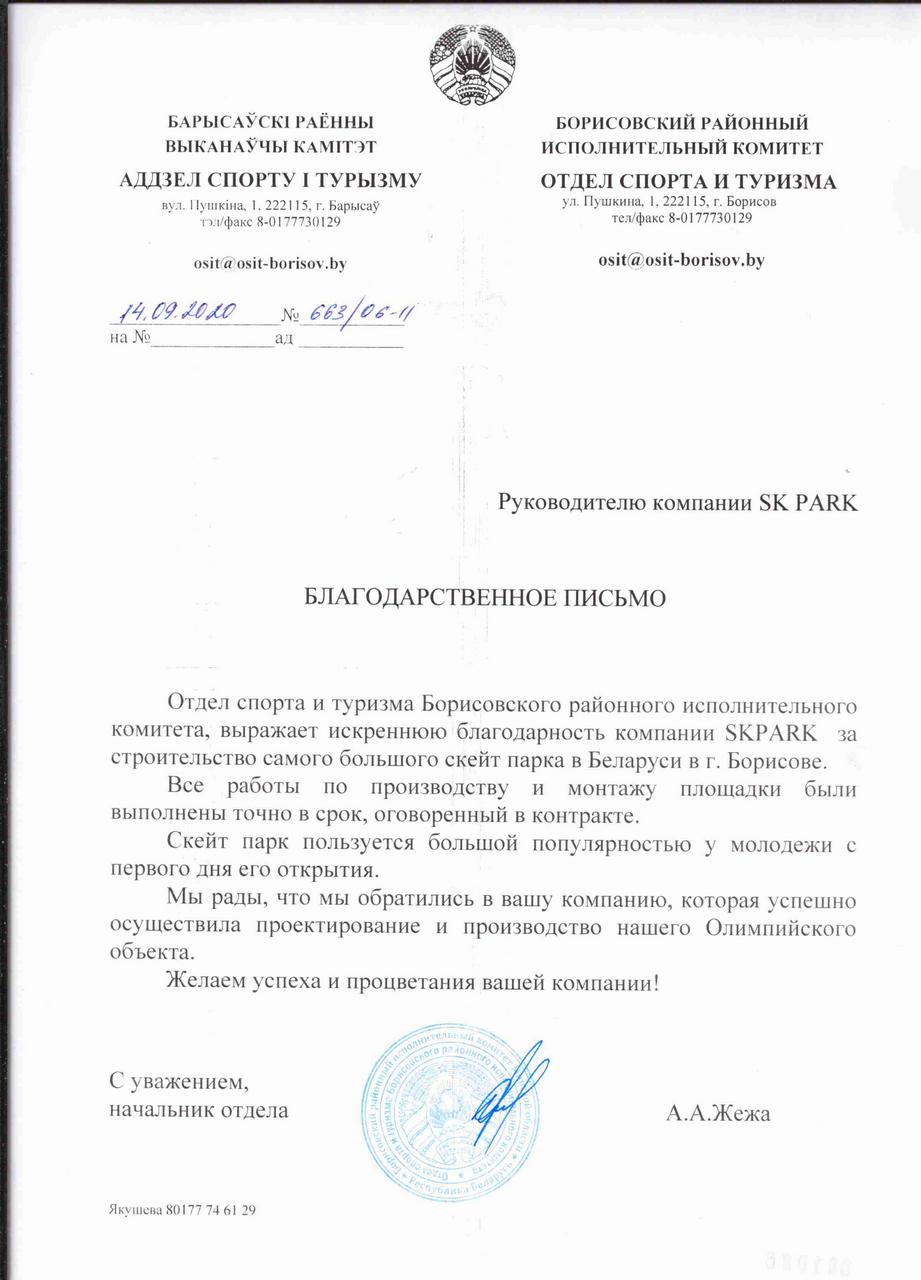 Открытие скейт площадки намечено на Май этого года. В рамках торжественного открытия запланировано проведение Кубка Борисова по скейтбордингу и этапа Belarus Skateboard Challenge 2020, а также открытие школы по скейтбордингу для всех желающих!