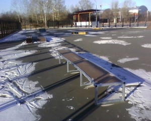 Данное оборудования было изготовлено из металлического каркаса, обработанного горячим способом в соответствии с требованиями ГОСТ 9.307-89. В качестве рабочей поверхности применялся пластик Skatelite pro®(профессиональное американское покрытие для скейт-парков).