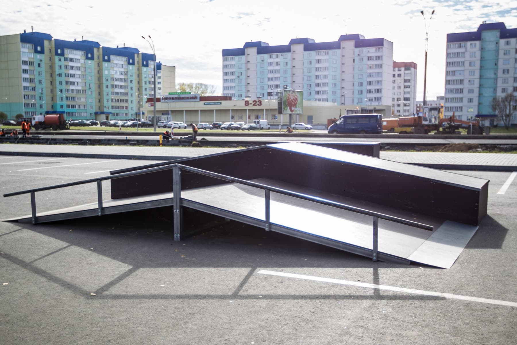 В 2015 г. наша компания установила скейт-парк в г. Могилев, РБ. Проект ориентирован на средний и начальный уровень райдеров, в дисциплинах: скейтборд, ролики и кик скутер. В парке представлены такие фигуры как: мини-рампа М2, скейт-плаза, фан-бокс с рейлом и боксом, квотрепайп, радиусная плавная разгонная горка, мэнуал-бокс, кикер и вэйв.