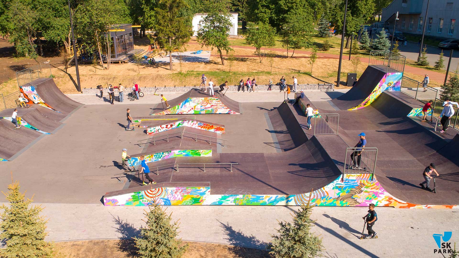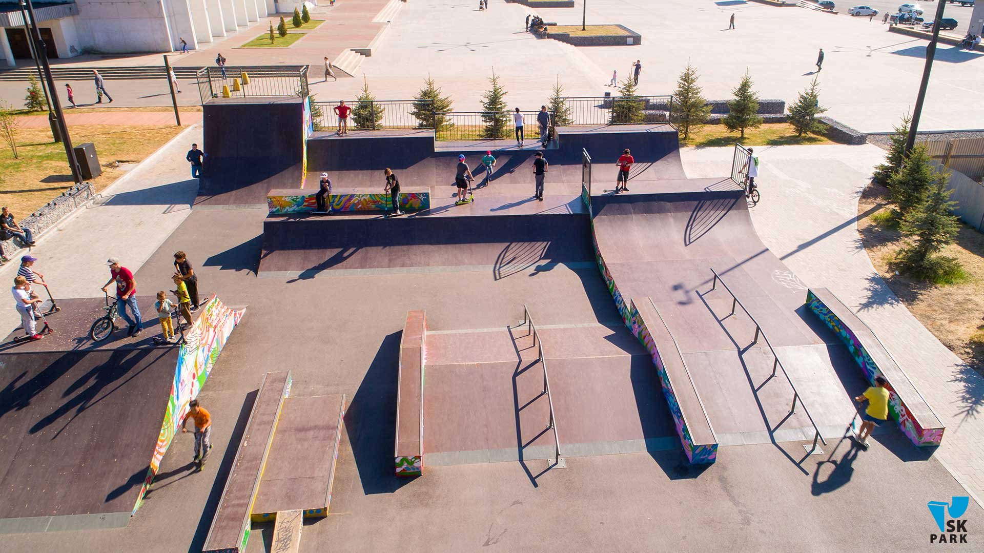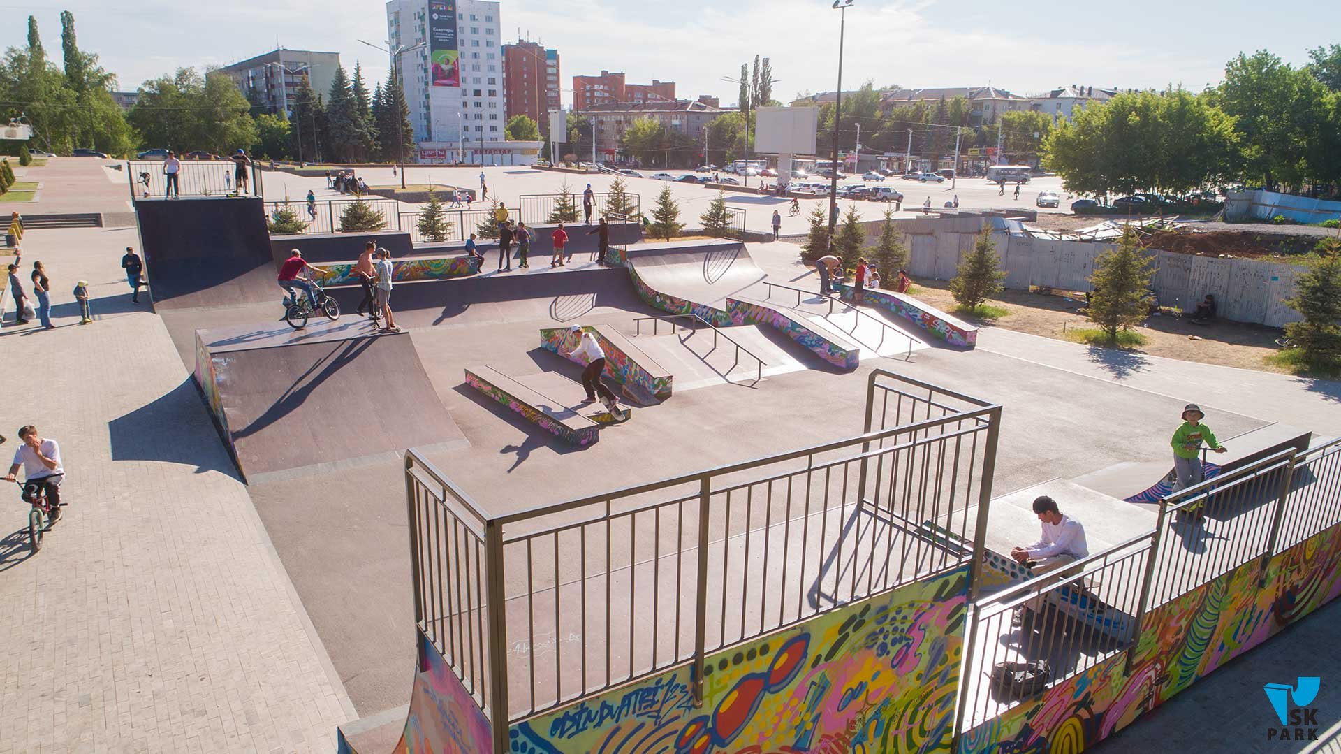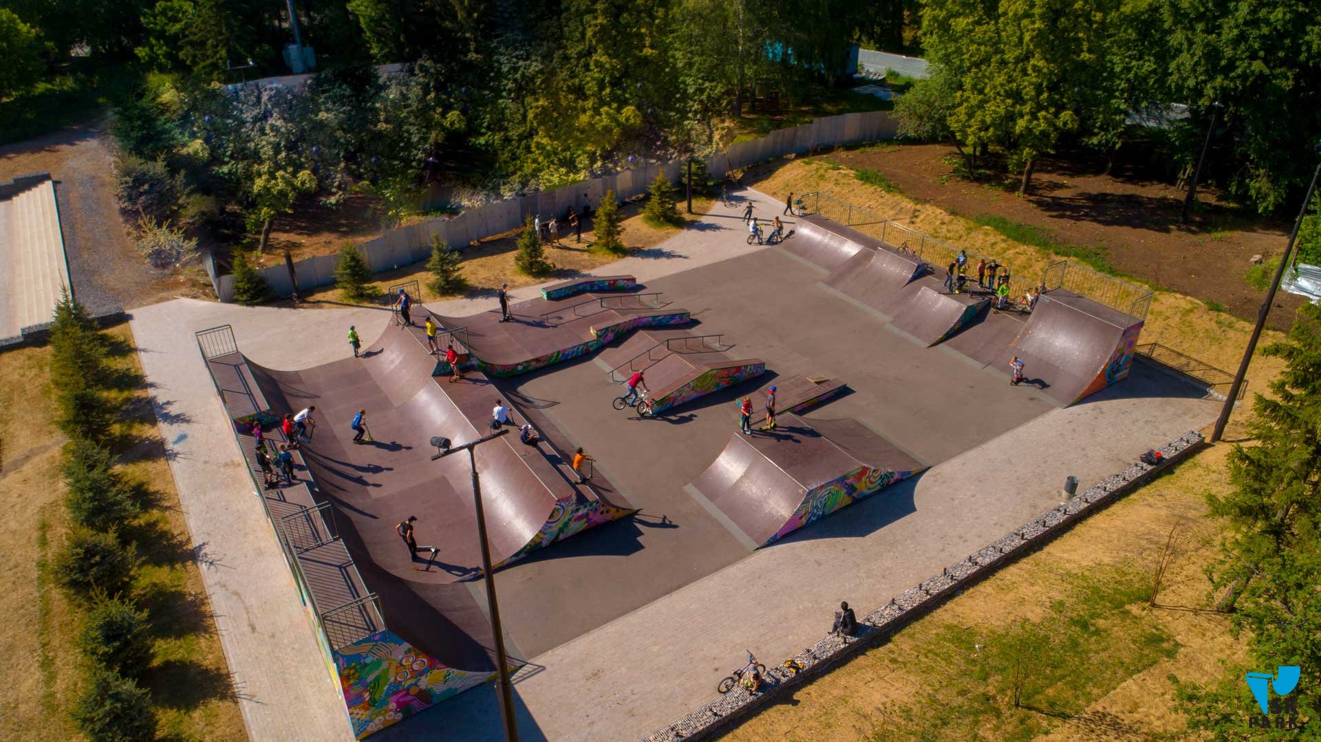 Универсальный скейт парк в Уфе площадью 540 кв.м вмещает 35 человек и рассчитан на любой уровень катающихся в таких дисциплинах как ВМХ/МТВ, скейтбординг, ролики, кик-скутер.