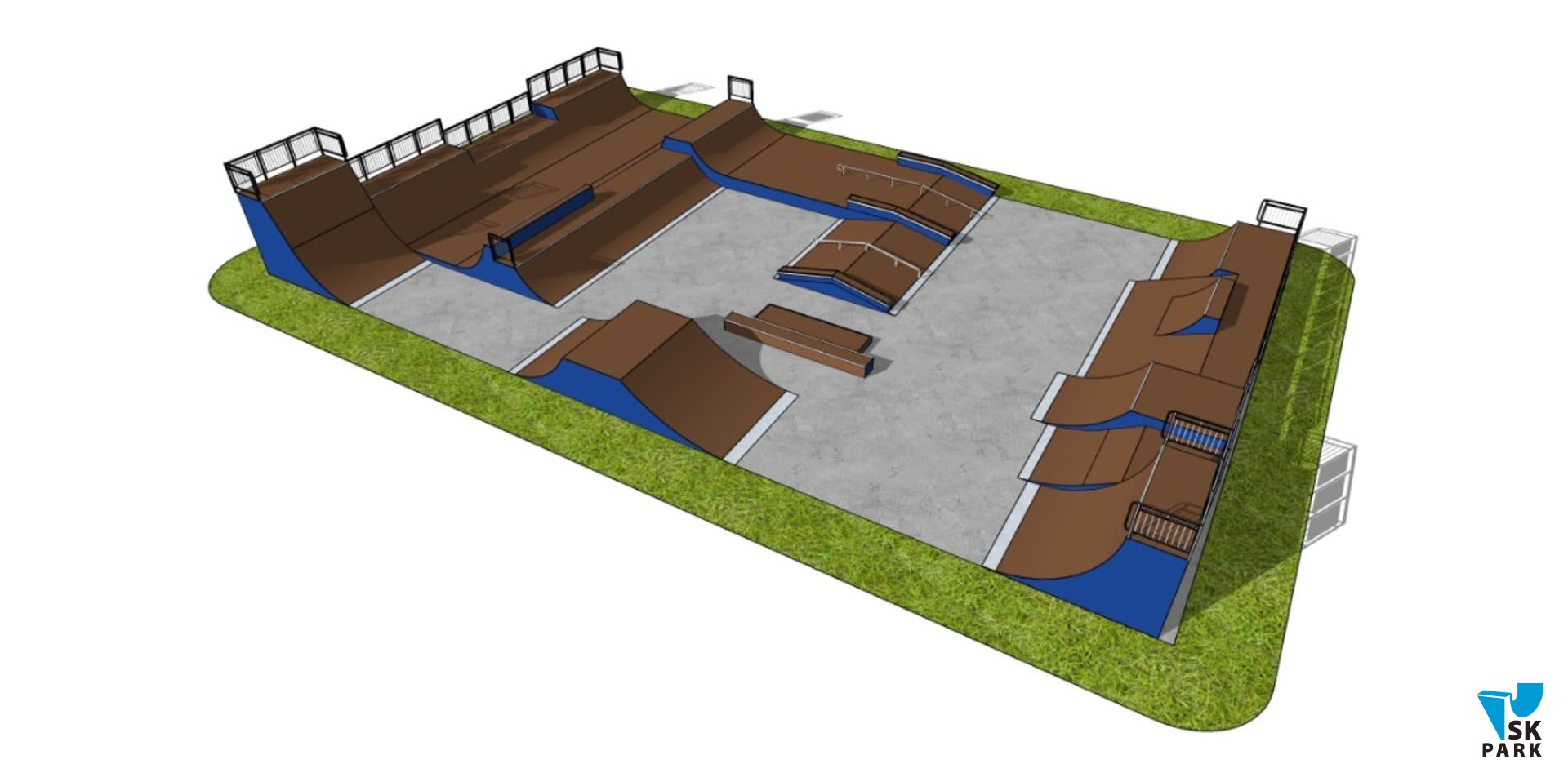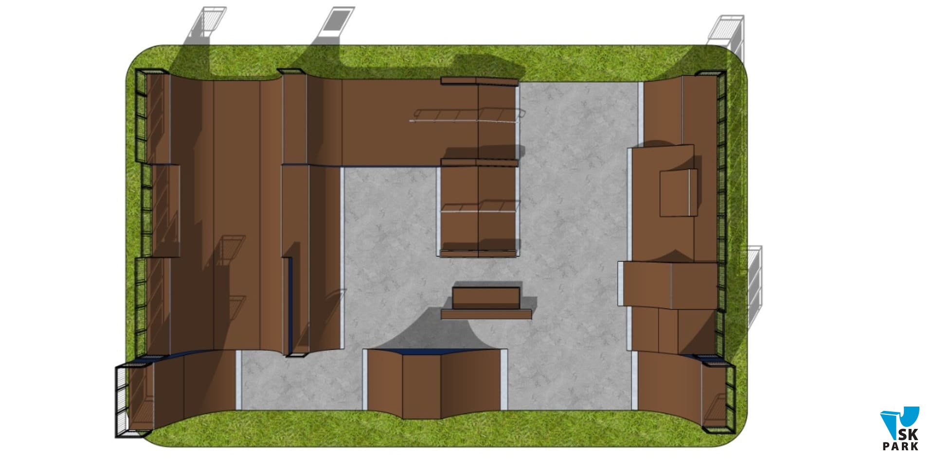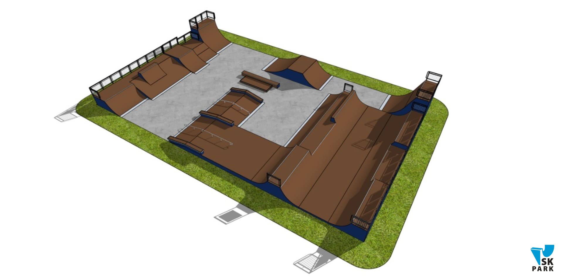 Все фигуры скейт парка собраны на деревянном каркасе из гладкостроганной доски обработанной огнебиозащитным составом, торцы каркаса обшиты влагостойкой фанерой ФСФ, рабочая поверхность обшита ламинированной ФСФ-фанерой с нанесенным сетчатым рифлением, что улучшает сцепление колес с покрытием. Все фигуры и конструктивные элементы площадки произведены на нашем собственном, высокоточном оборудовании. Все металлические элементы проходят подготовку в несколько этапов: пескоструйная обработка, нанесение грунта и окраска полимерно-порошковым методом в специально оборудованной камере. Крепеж, применяемый при сборке, оцинкован и устойчив к воздействию окружающей среды.