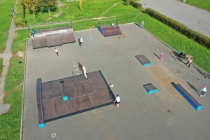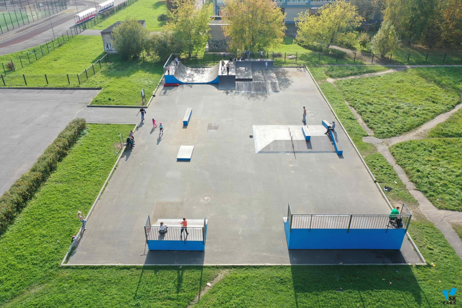 Отличительной чертой этого проекта является совмещённая Мини-рампа и Скейт плаза. Благодаря такому решению райдерам удобно совмещать сразу два стиля катания – радиус и стрит. Оптимальные параметры углов и высоты радиуса делают тренировки в Мини-рампе комфортными и безопасными.