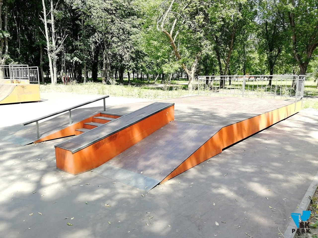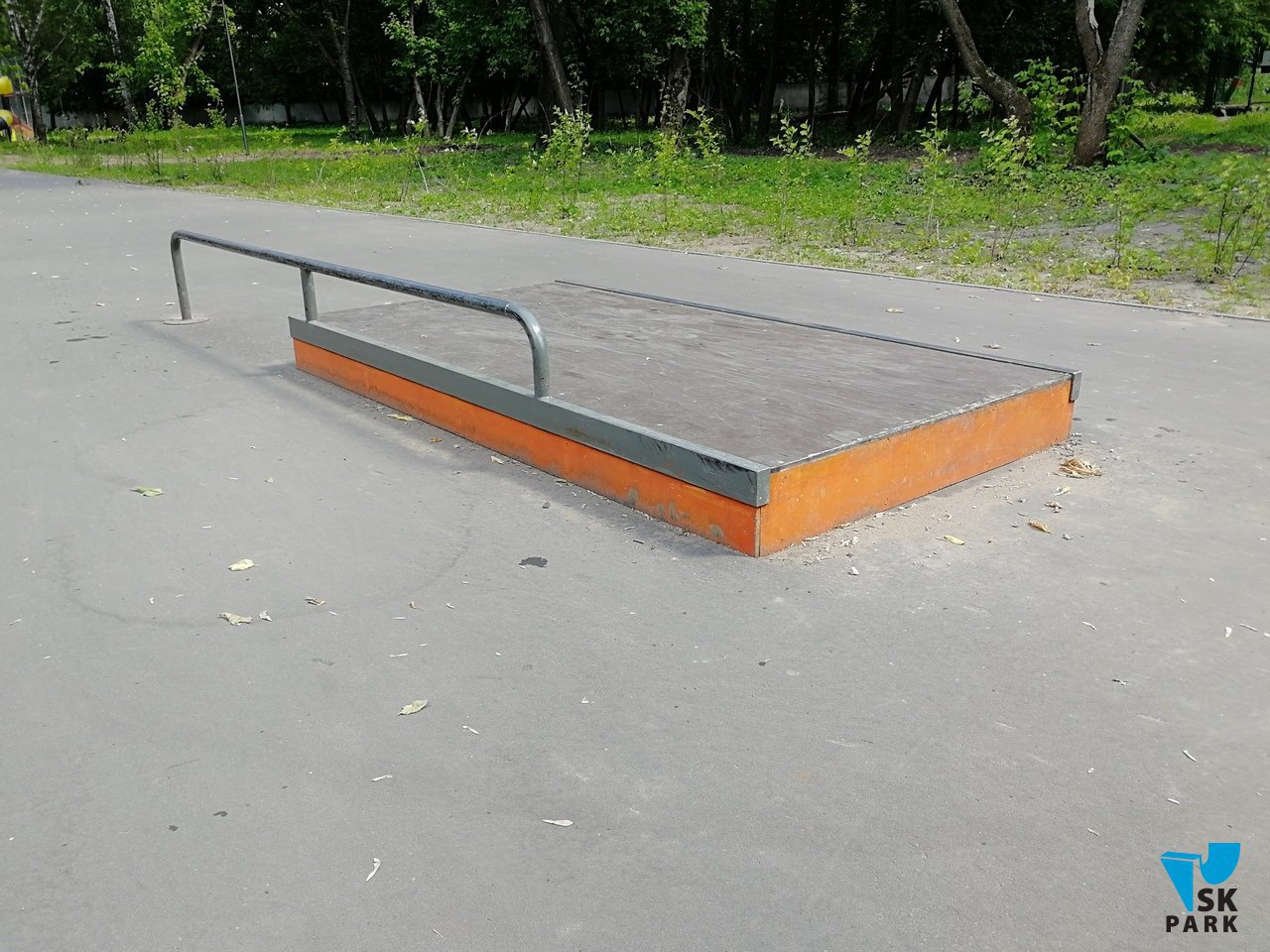 Данный объект создан по индивидуальному проекту и оснащен комплексом фигур, в том числе для освоения и отработки базовых навыков и трюков. По желанию заказчика, торцевые панели фигур были выкрашены в оранжевый цвет.