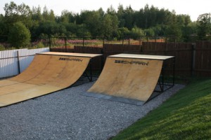 В состав скейтпарка входят: минирампа, разгонная горка, минифанбокс и грайнд-бокс