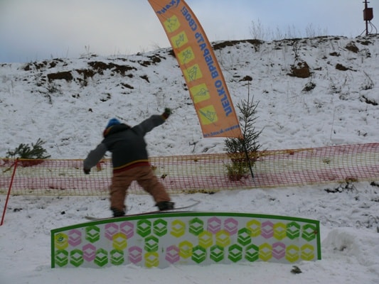 Сноупарк состоит из двух линий фигур и рассчитан для начинающих сноубордистов.