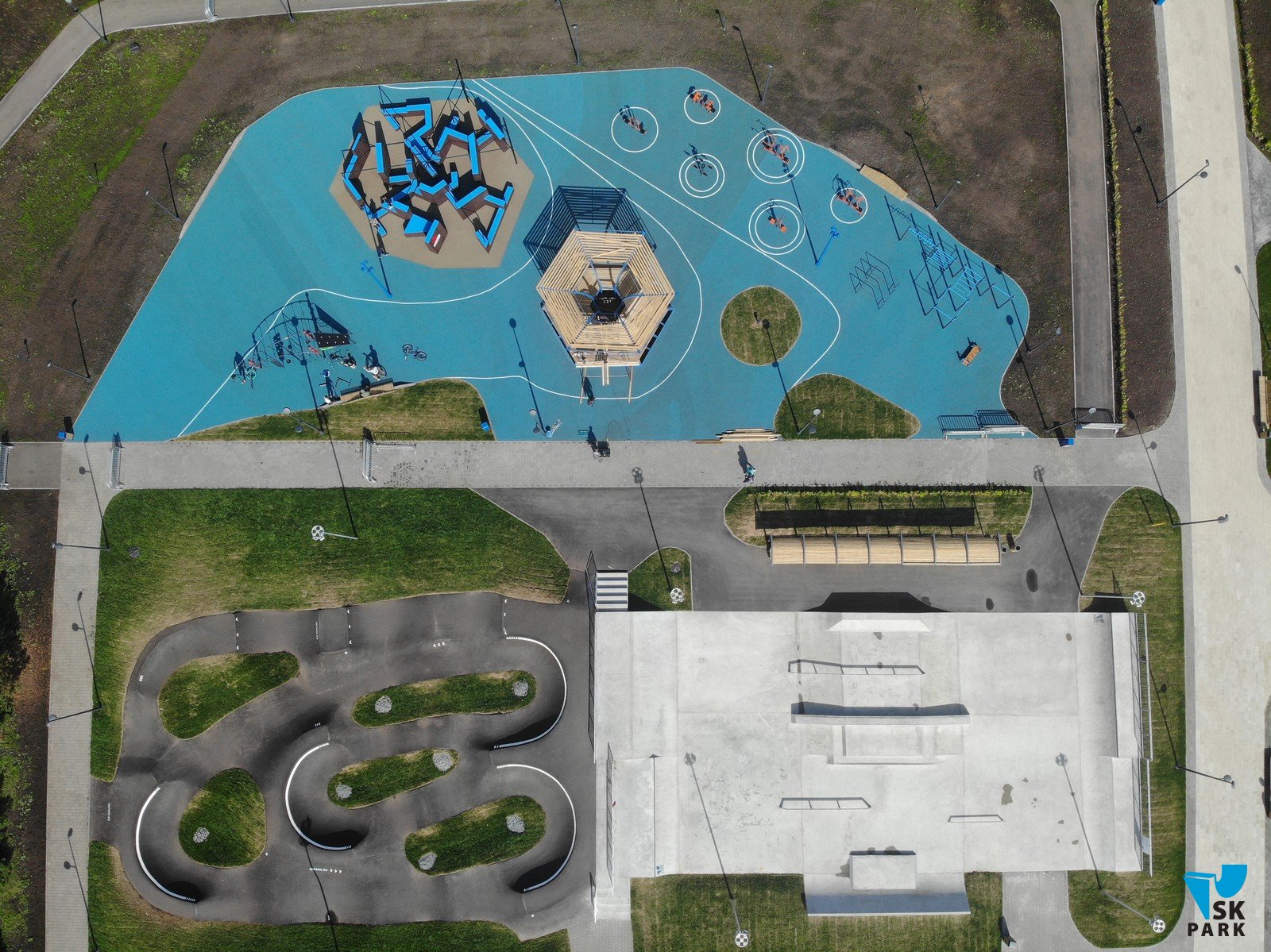 Кластер общей площадью 1600 кв.м. разделен на 4 сектора, каждый из которых подходит как для тренировок, так и для проведения соревнований и показательных выступлений.