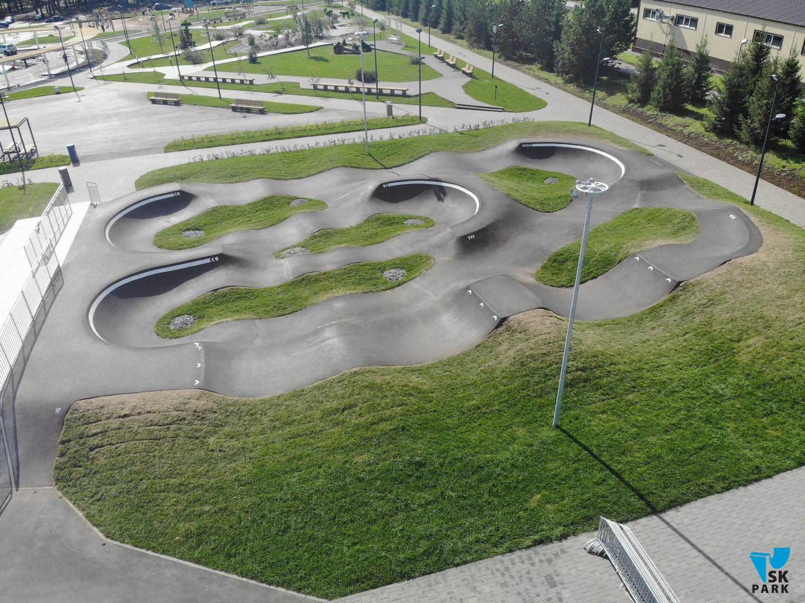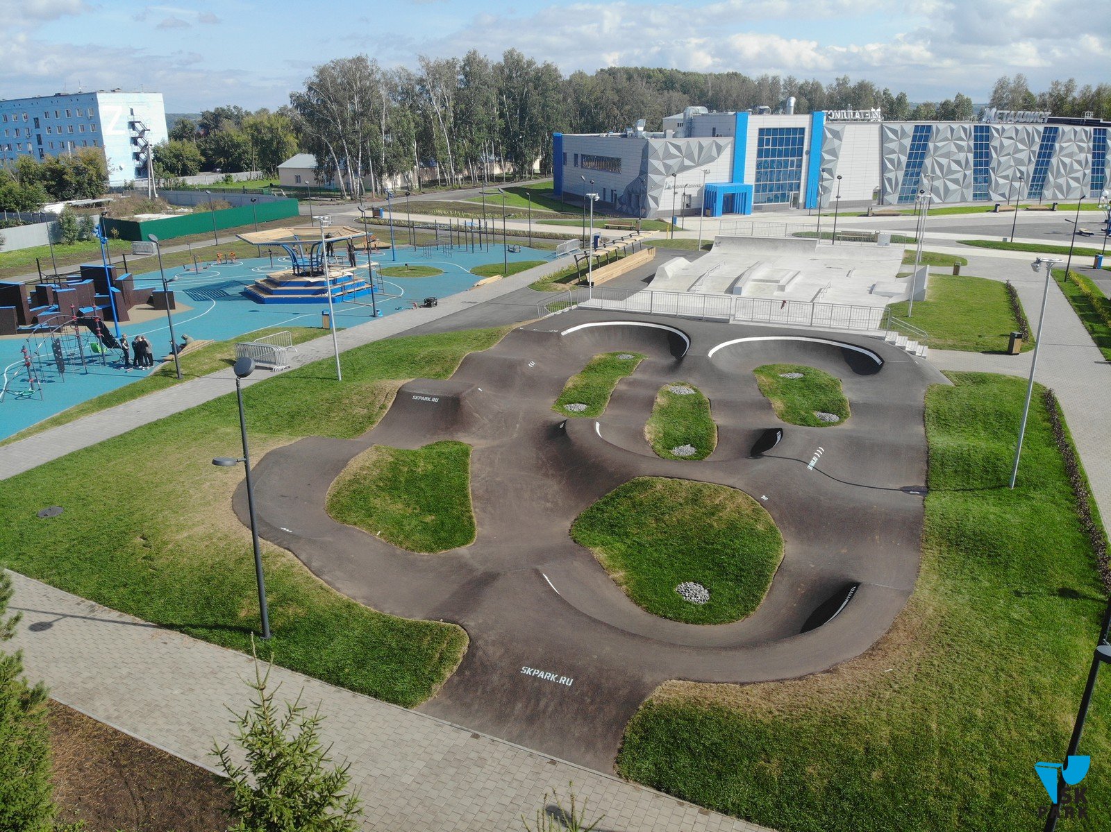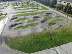 Асфальтовый памп-трек (453 кв.м) с протяженностью трека 50 метров подходит для катания в дисциплинах ВМХ, МТВ, скейтбординг, ролики и кик-скутер. Площадка рассчитана как на новичков так и для более опытных райдеров.