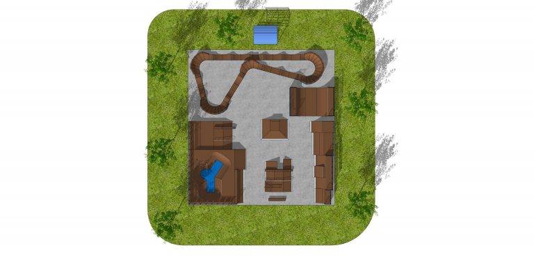 - Модульный памп трек - соответствует проекту SKP 29-13 из нашего каталога, длина его трассы составляет 72 метра и включает в себя 4 поворотные зоны.